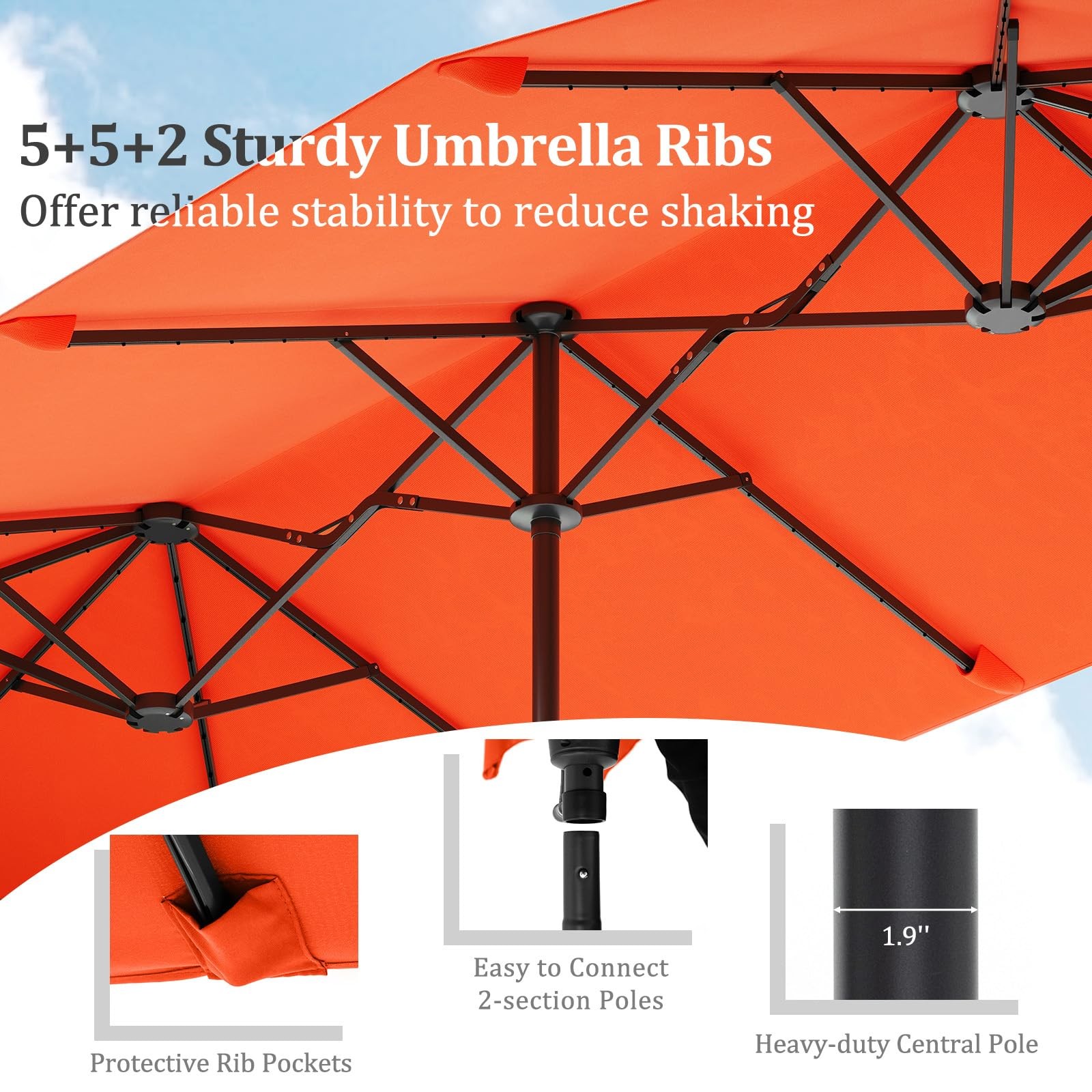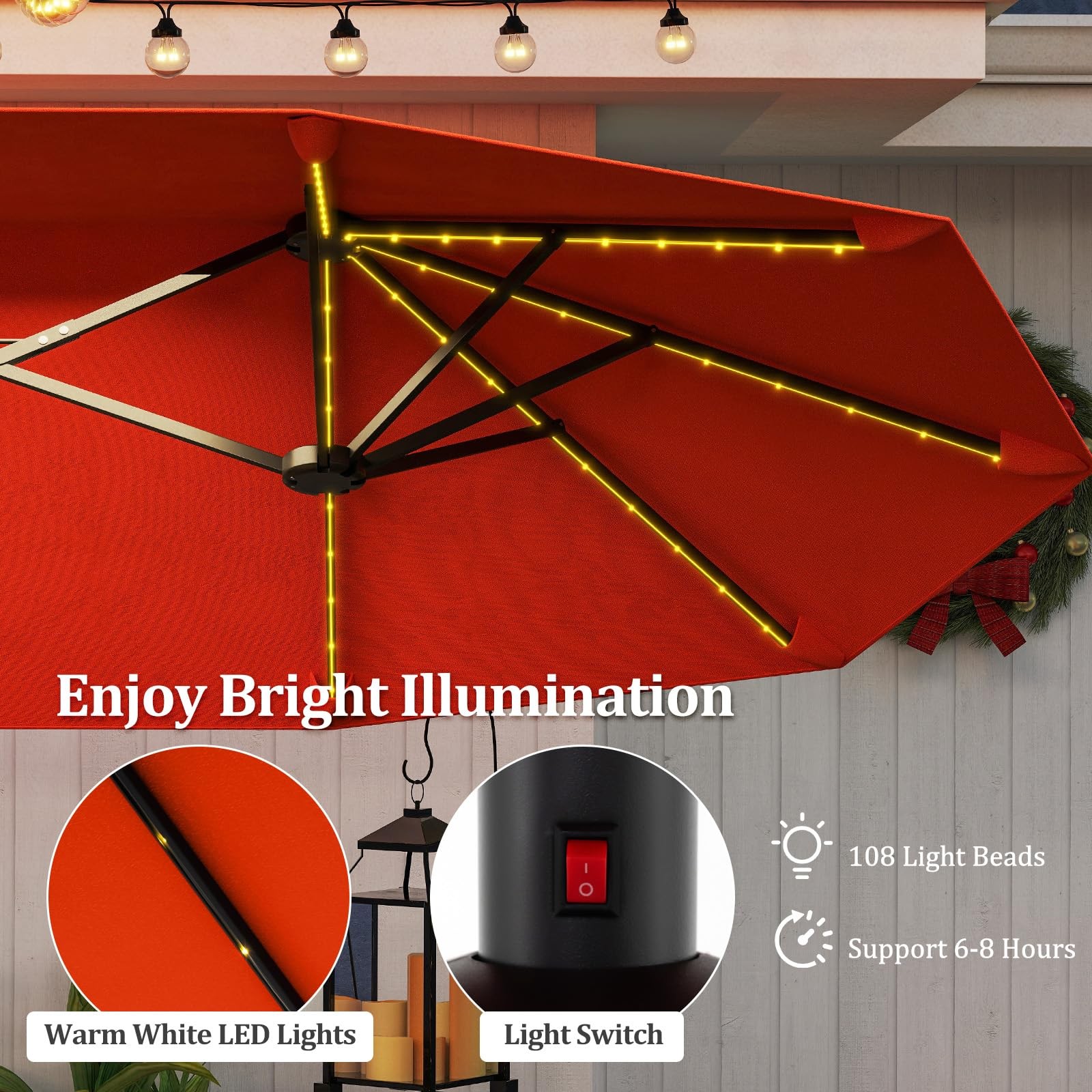 13 FT Double-sided Patio Umbrella with Solar Lights Crank Handle