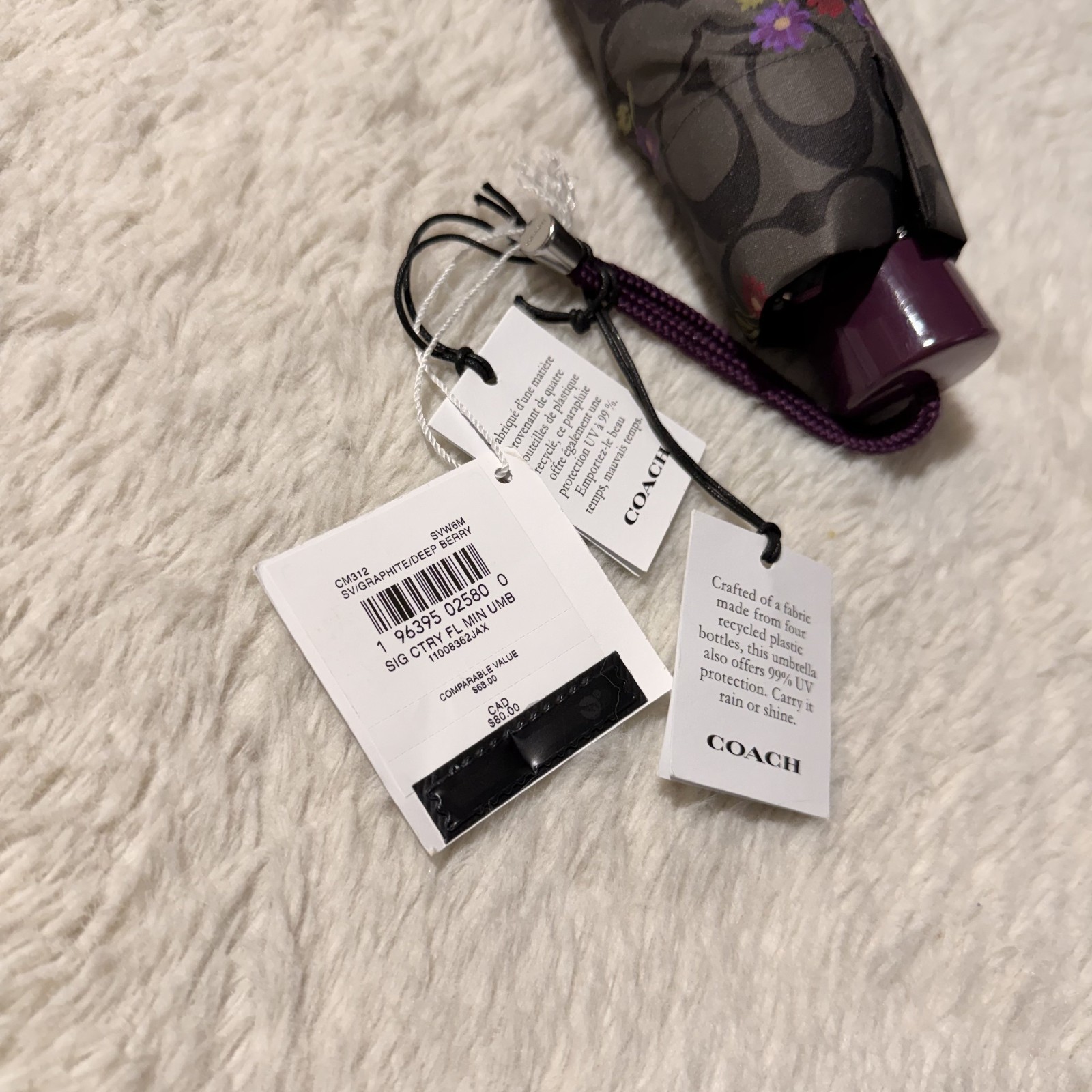 как выглядит Coach Mini Umbrella UV Protection Signature Deep Berry Flower Print CM312 NWT фото