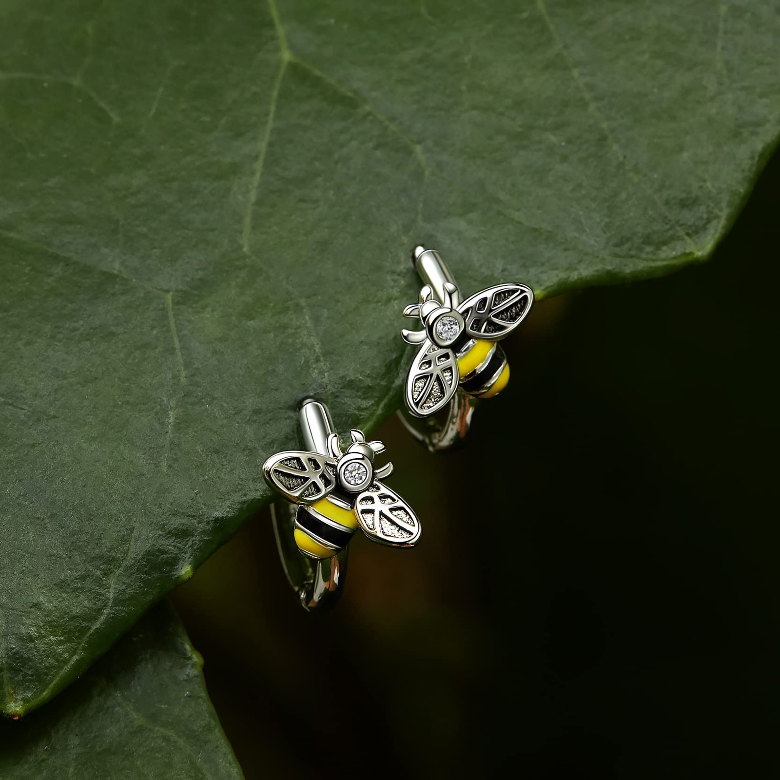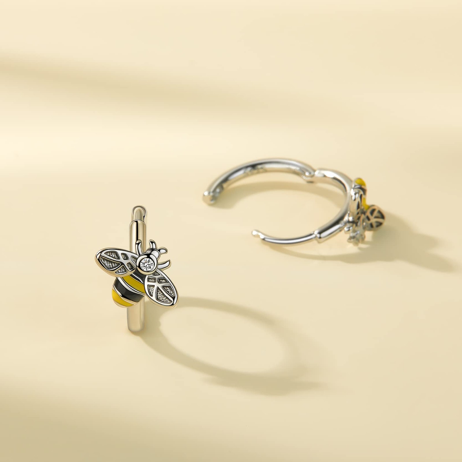 Hanreshe Small Bee Hoop Earrings Silver Plated Fashion 0.59 inches,