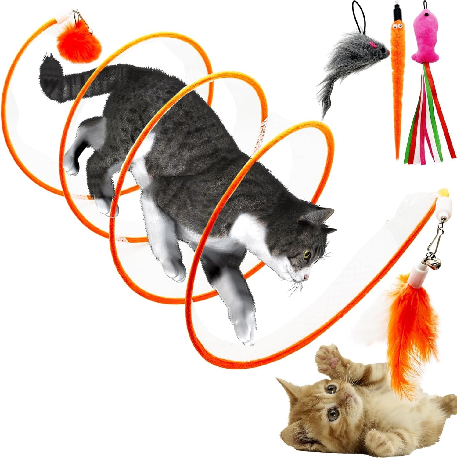 Self Play Cat Hunting Spiral Tunnel Toy, Folded Cat Spring Tunnel Toys for In...