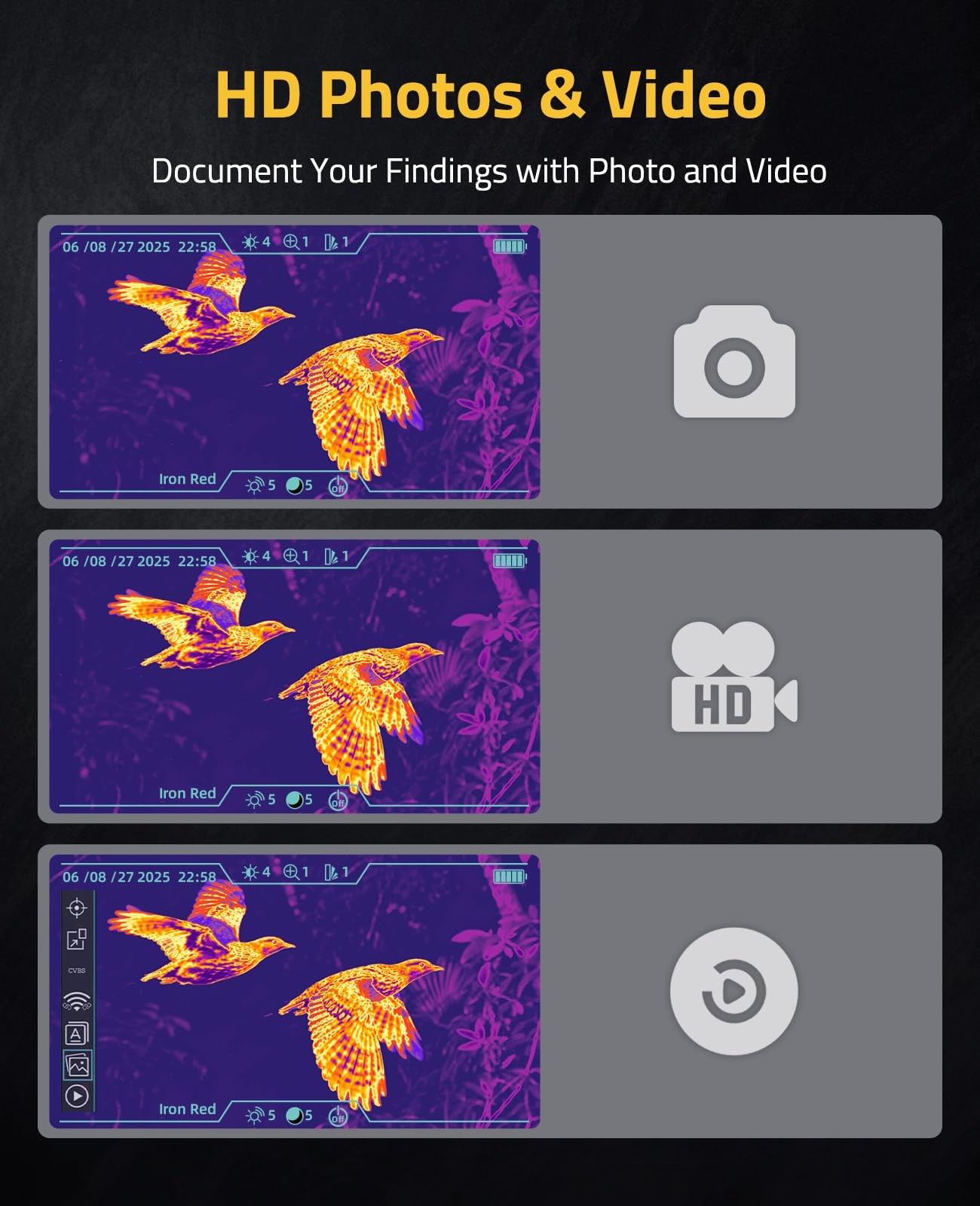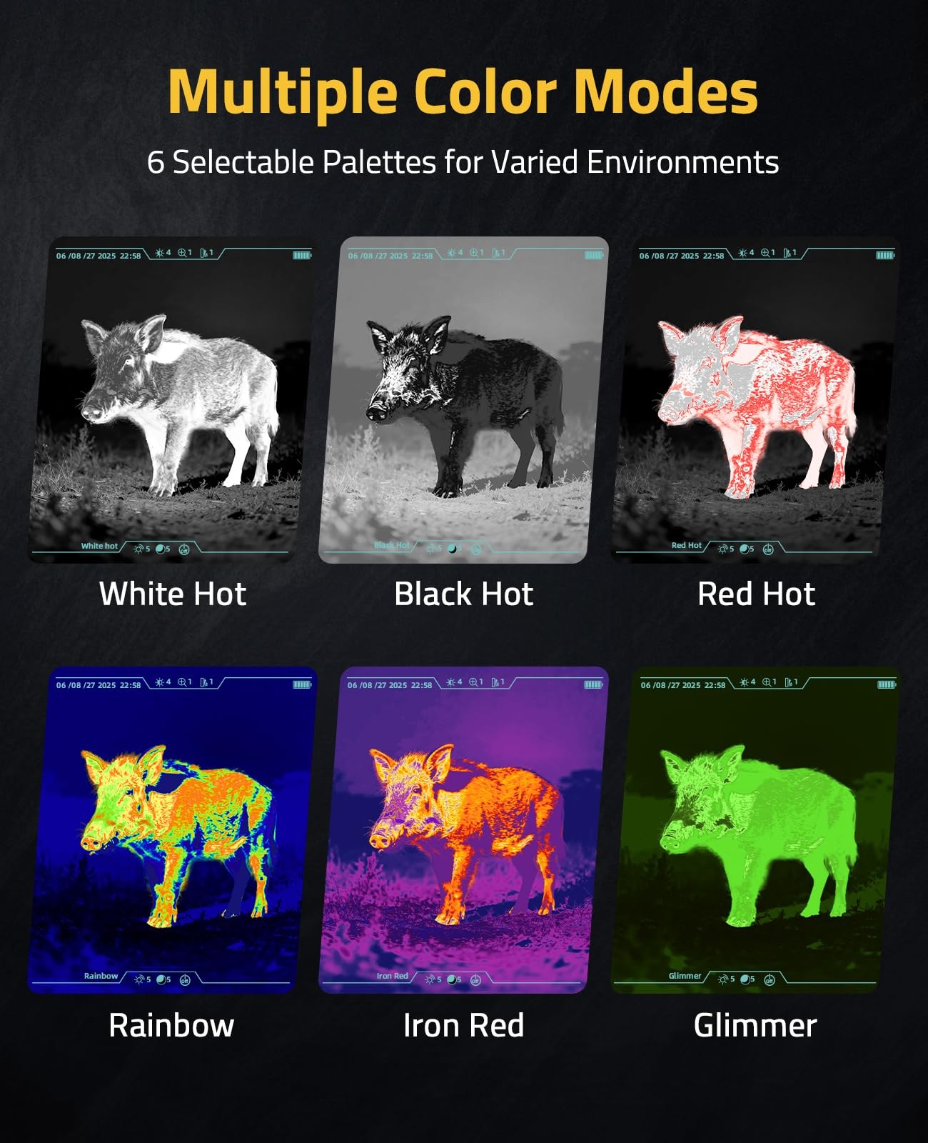 Multiple Color Modes: White-Hot/Black-Hot/Red-Hot/Rainbow/Iron-Red/Cold