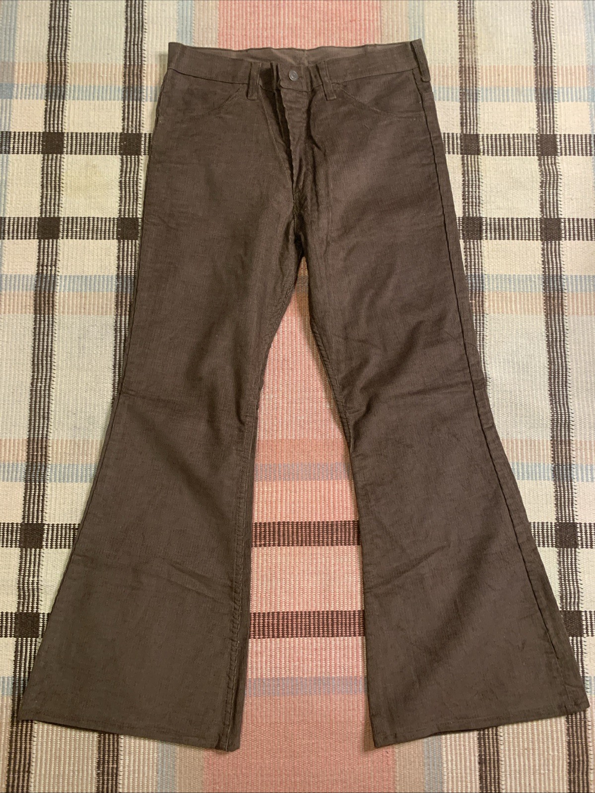 Vtg NWT 70s Plain Pockets Wide Flare Brown Corduroy Pants 34x30 4775