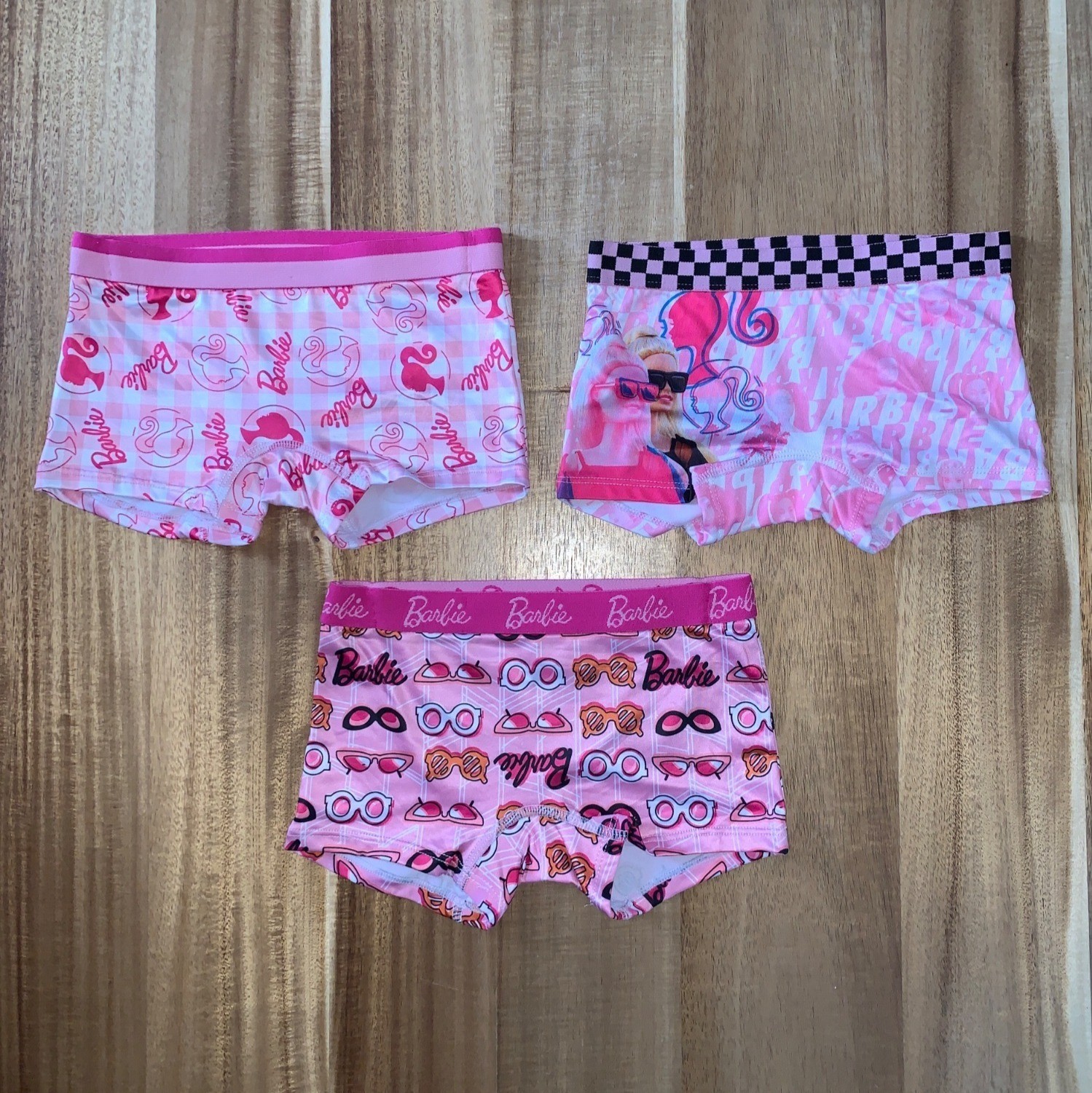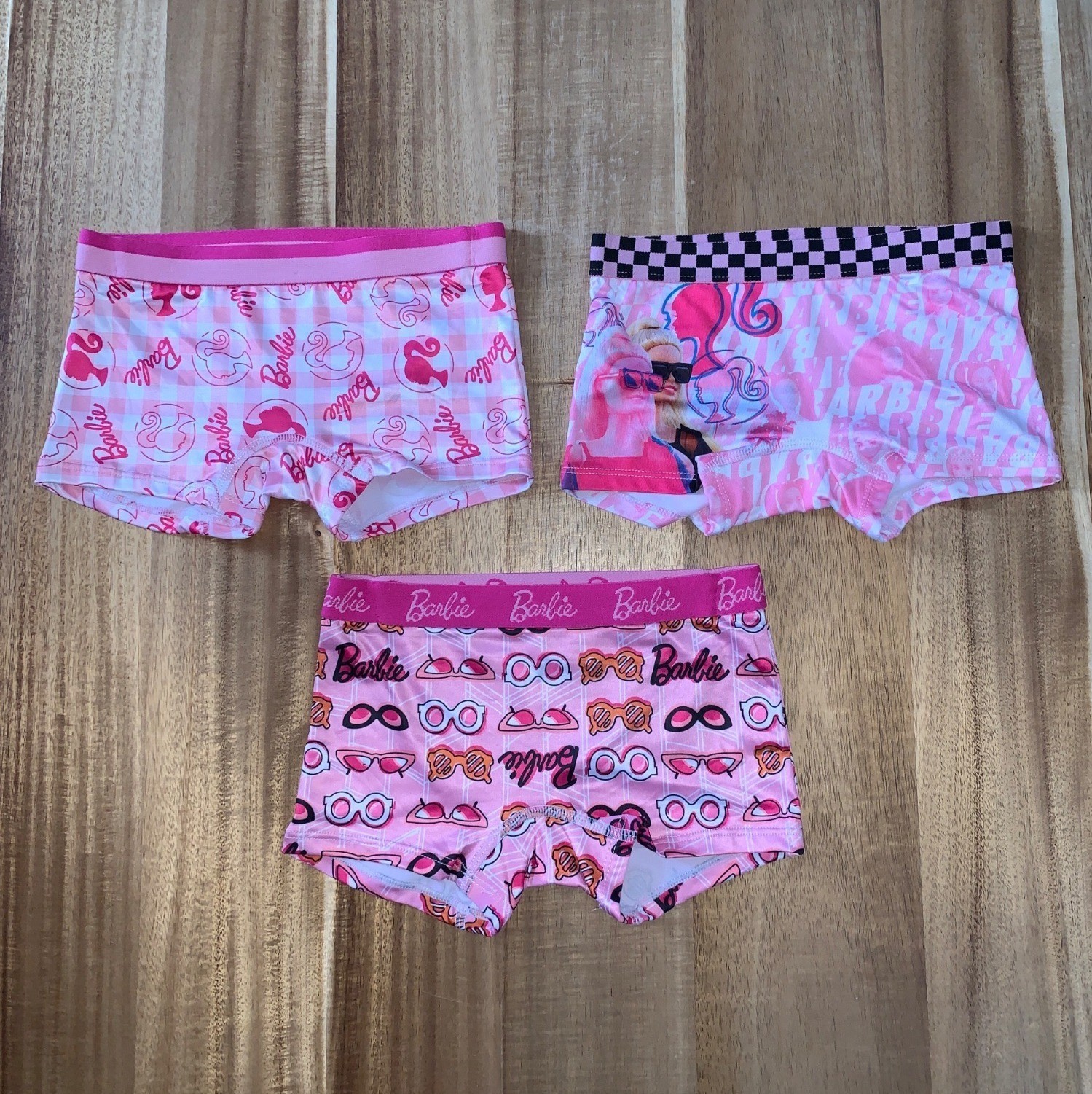 как выглядит Barbie Girls 3-Pack Boxer Briefs Pink Multicolor Spandex/Polyester Blend Size 4 фото