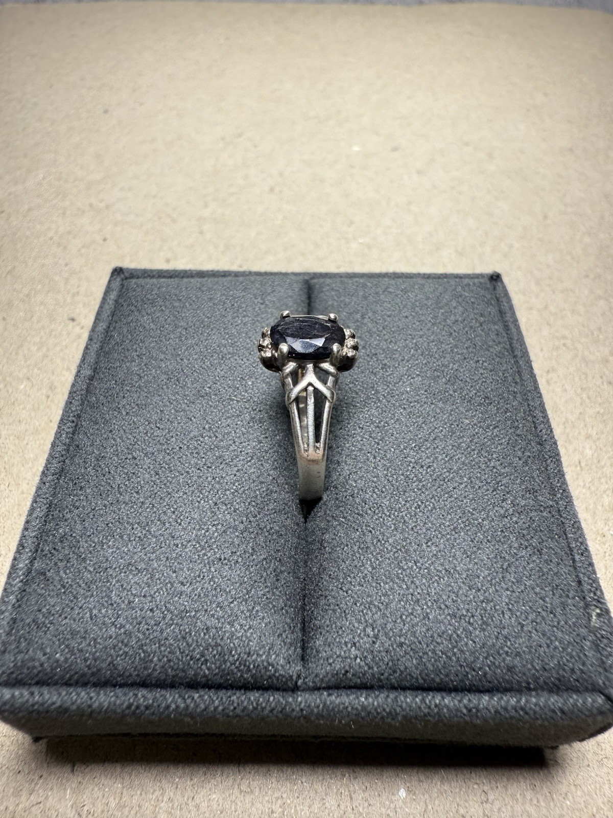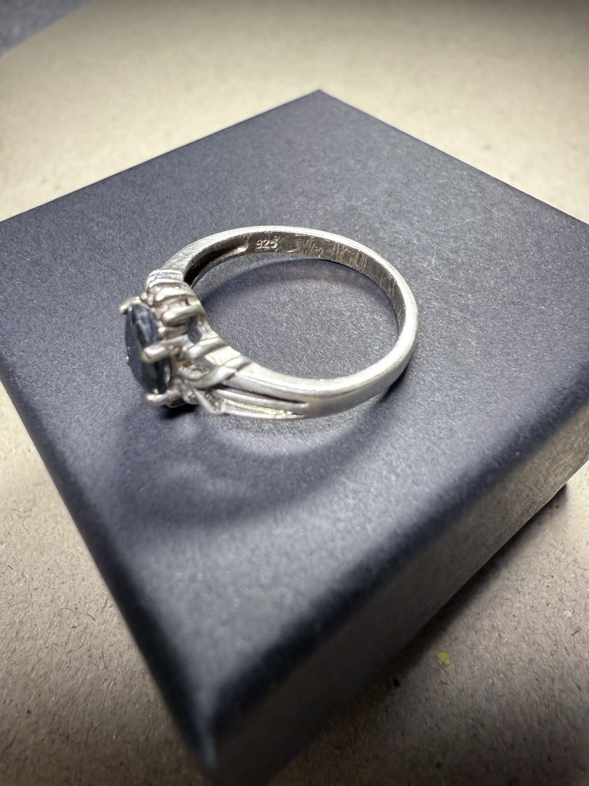 как выглядит Vintage Oval Faceted 7x5 mm Natural Blue Sapphire Sterling Silver Ring Size 6 фото