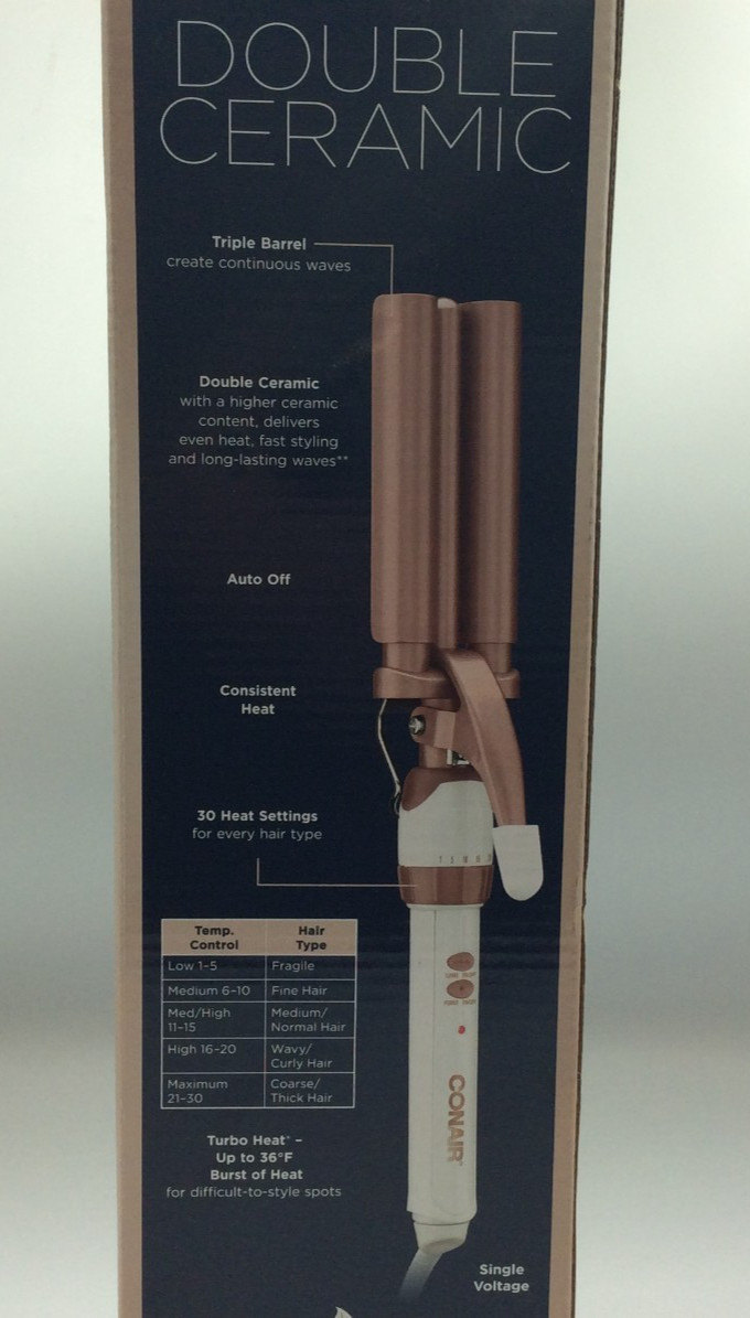 Conair Double Ceramic 3 Barrel Curling Iron Hair Waver White / Rose Gold NIB