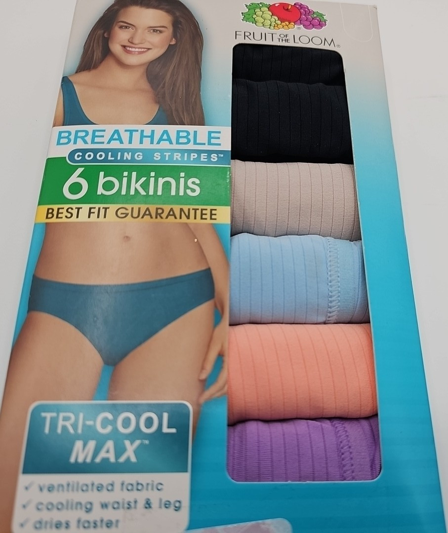 6PK Fruit of the Loom Women's BIKINI Panties Breathable Cooling Size 7 LARGE