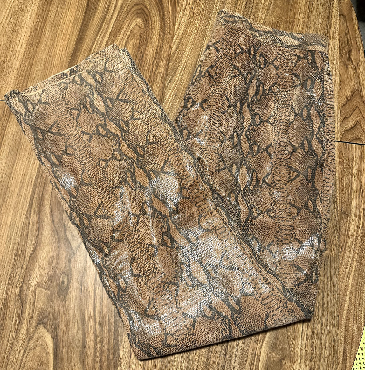 как выглядит VTG Y2k Snakeskin print 100 Leather Pants Lined W Sz12 Brown Straight Leg 32x30 фото