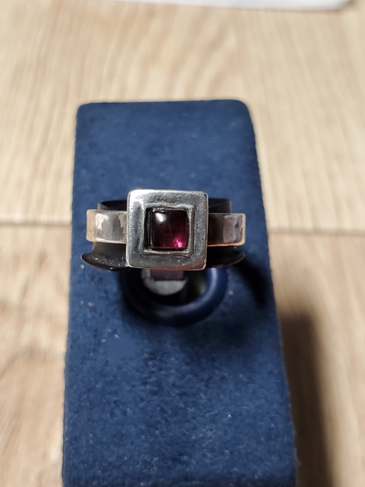 как выглядит 2 Sterling Silver Garnet Artisan Ring band Alternative Engagement Bridal Set фото