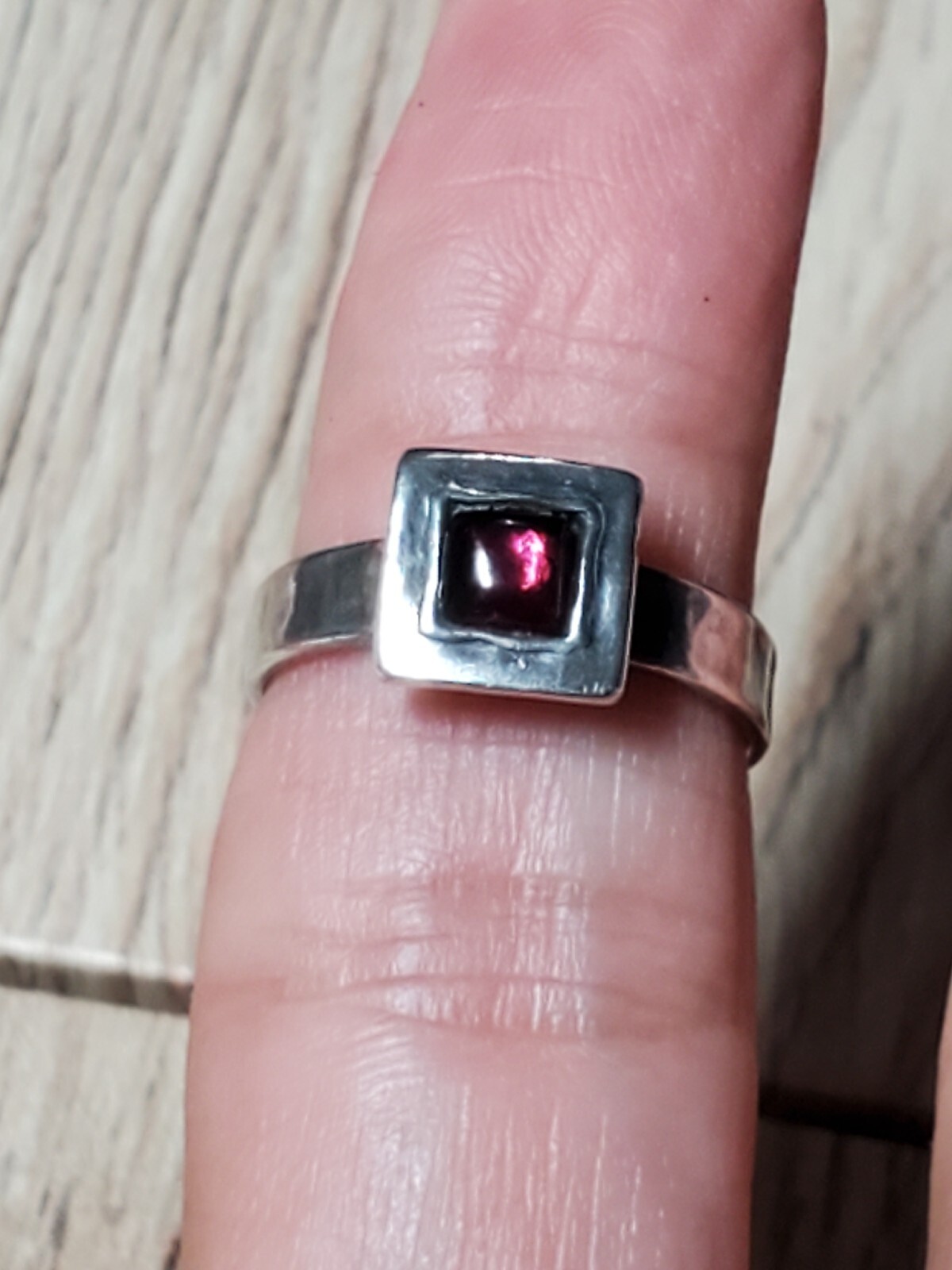 2 Sterling Silver Garnet Artisan Ring band Alternative Engagement Bridal Set