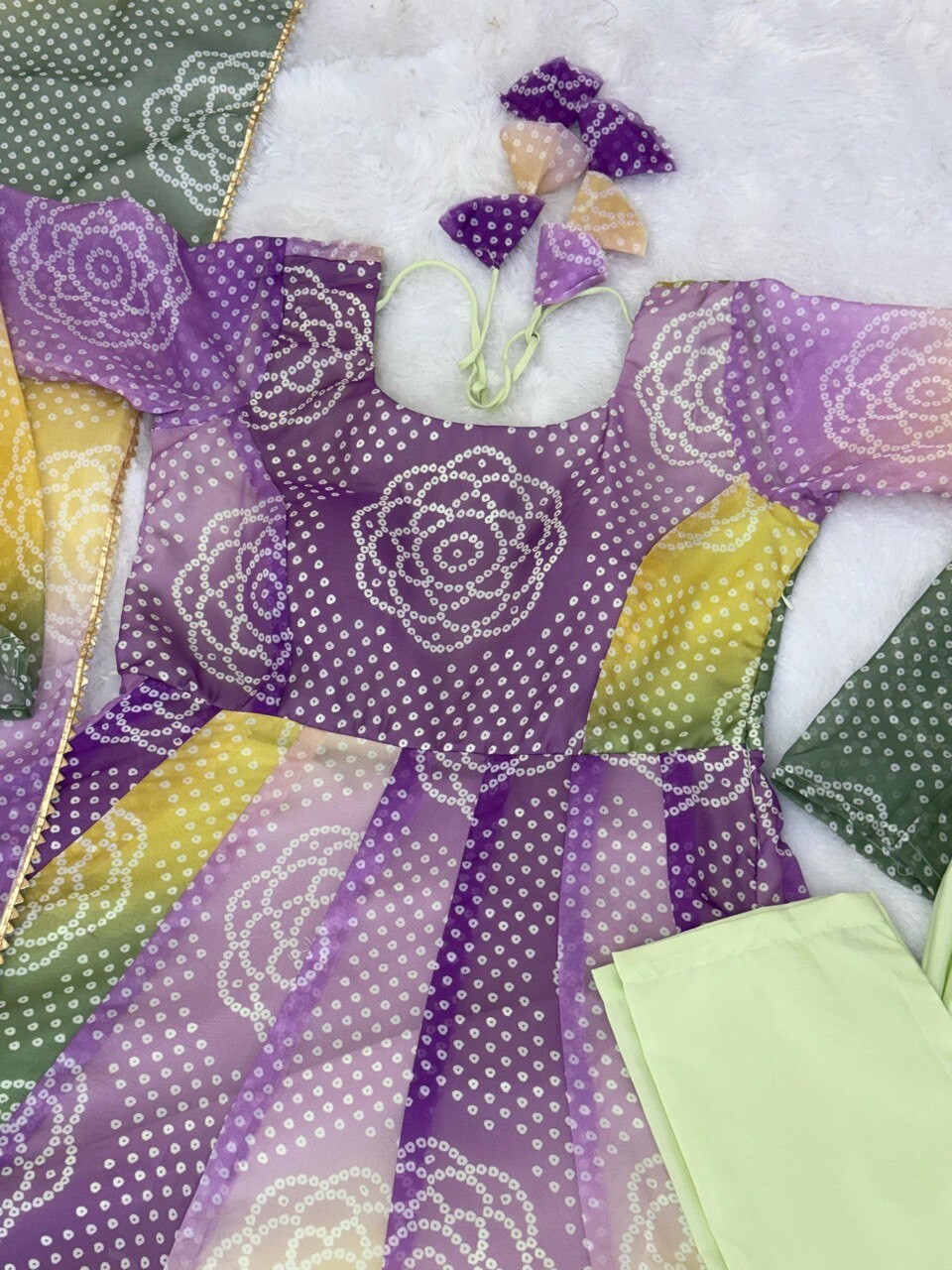 DUPATTA WORK : LIGHTWEIGHT ORGANZA BANDHEJ PRINT BOADER LACE WORK