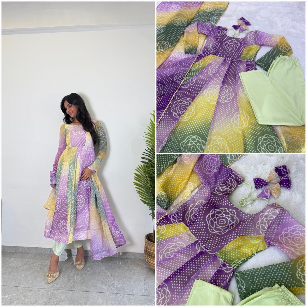 TOP WORK: LIGHTWEIGHT ORGANZA BANDHEJ FABRIC INNER MICRO COTTON
