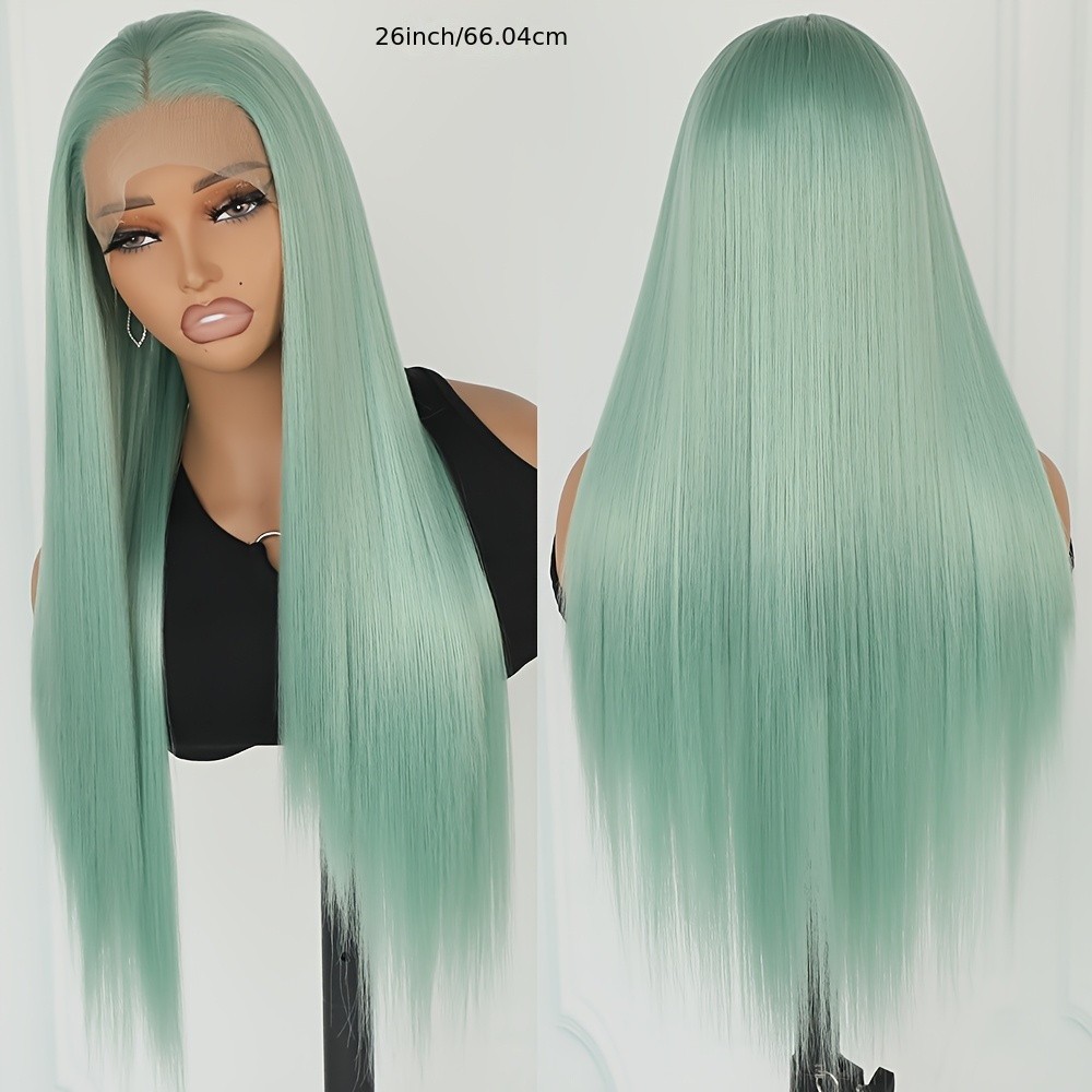 как выглядит Long Light Green Color Straight Hair Colorful Synthetic Lace Front Wigs Glueless фото