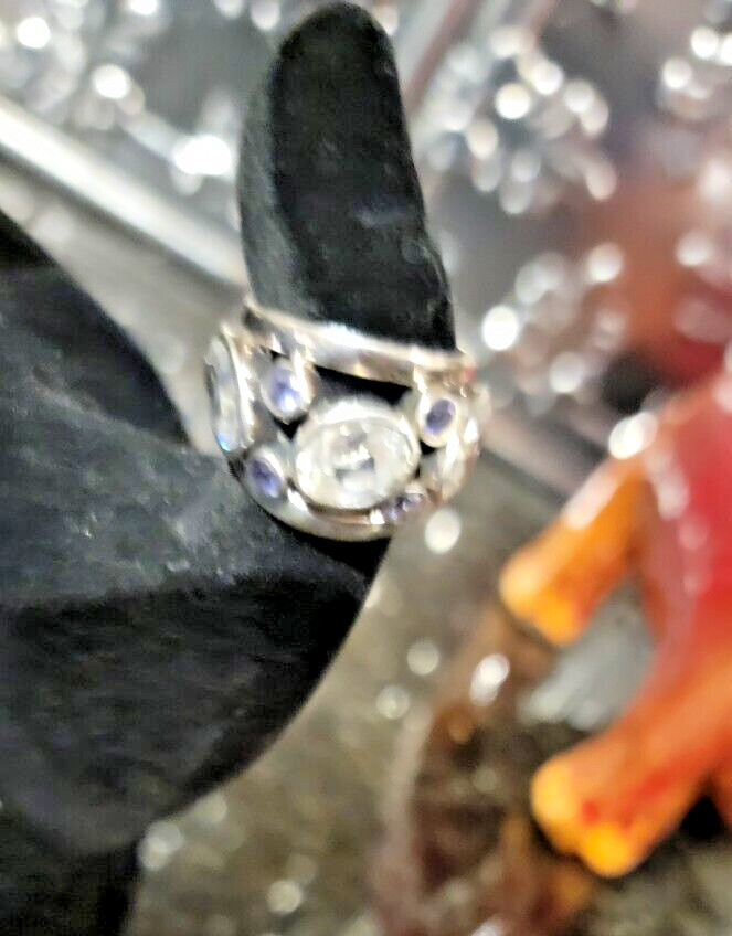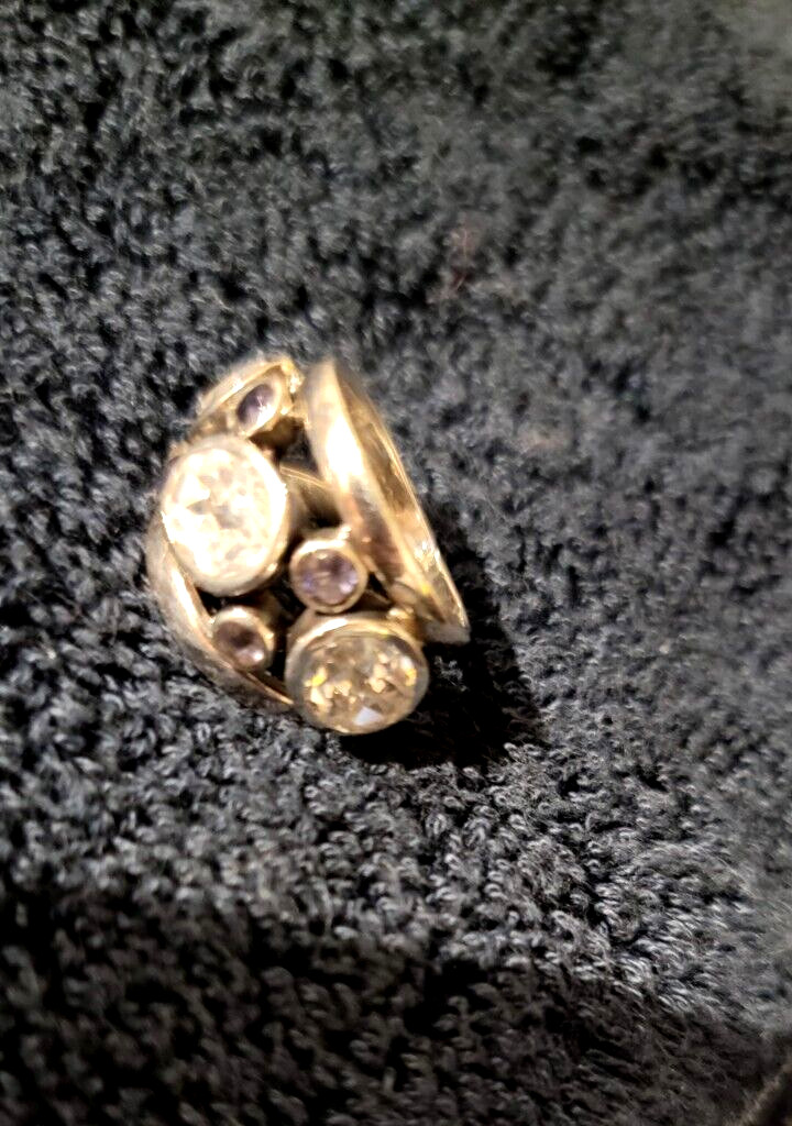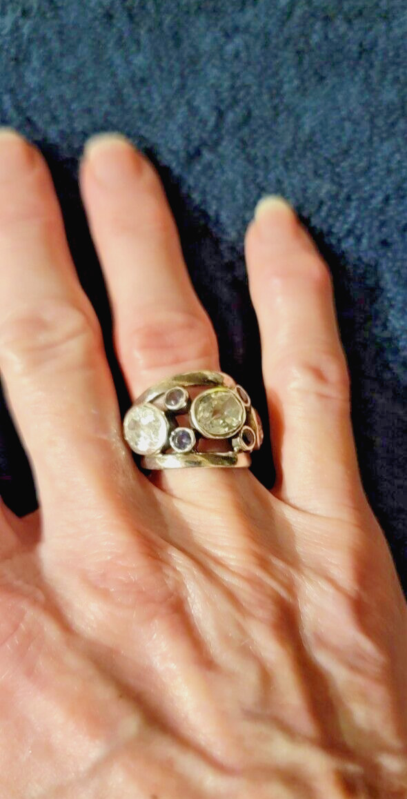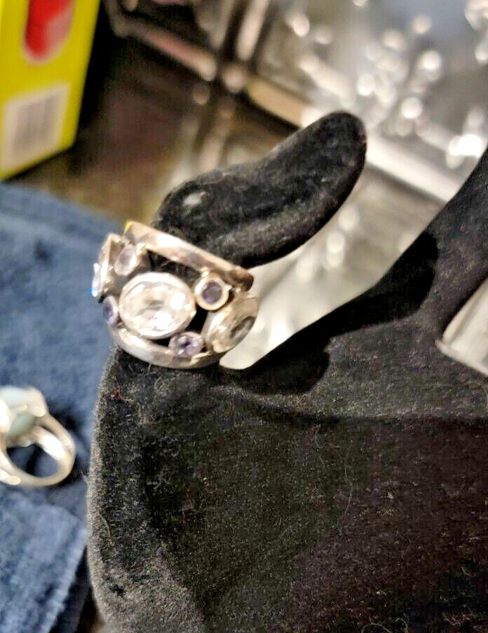 White Purple Violet CZs 925 Silver Ring Artisan open band design VTG 6.5 6.8