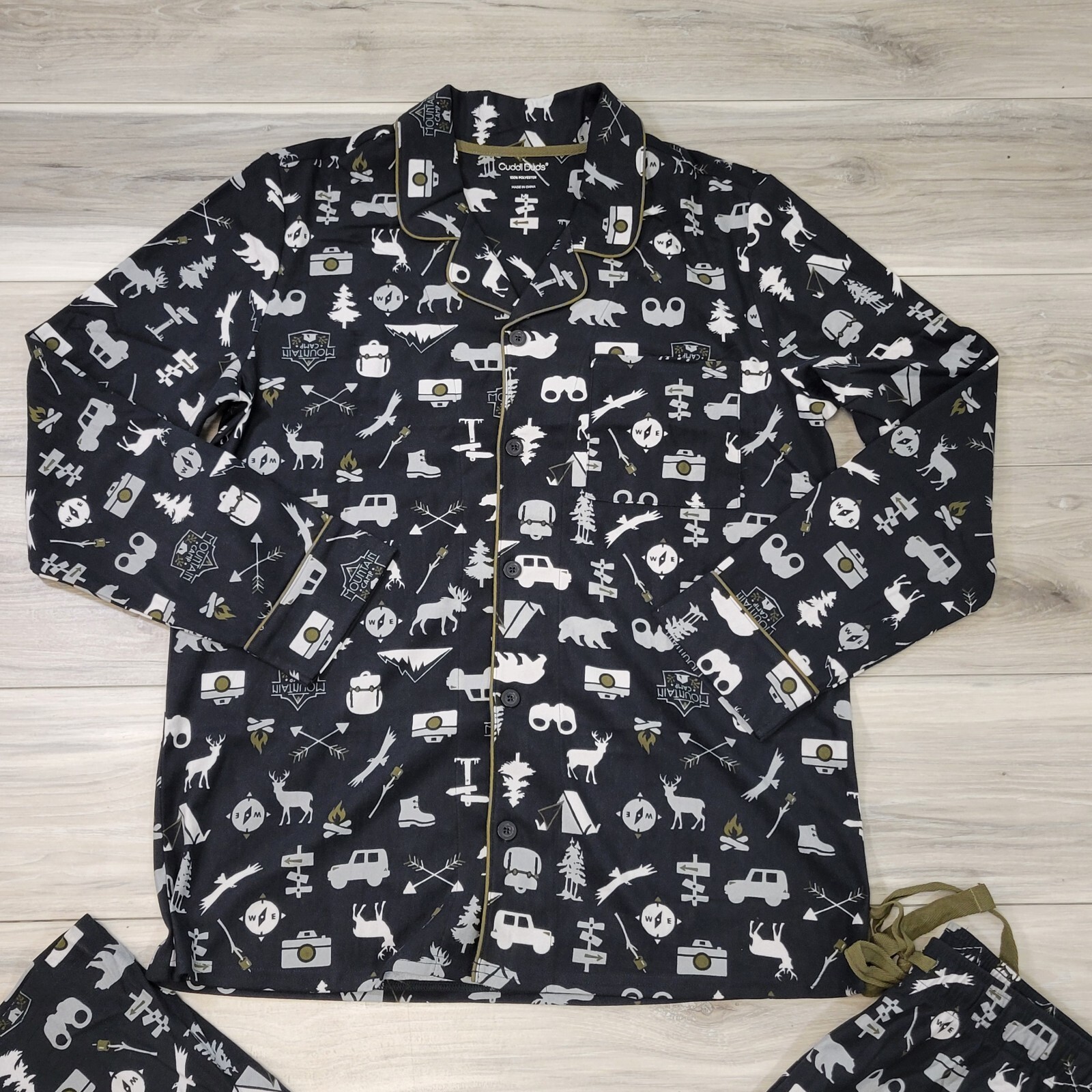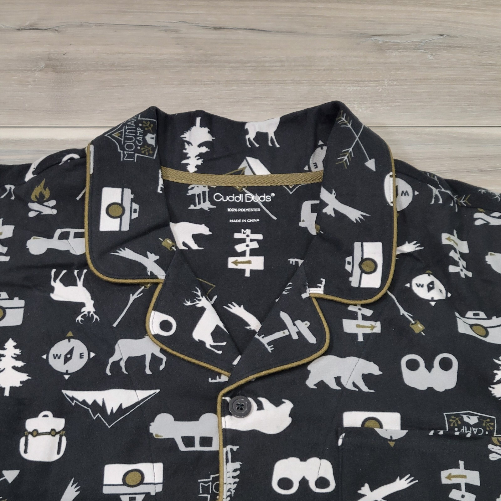 Cuddl Duds Pajama Women's Medium Black 2 Piece Set Notched-Collar L/S New