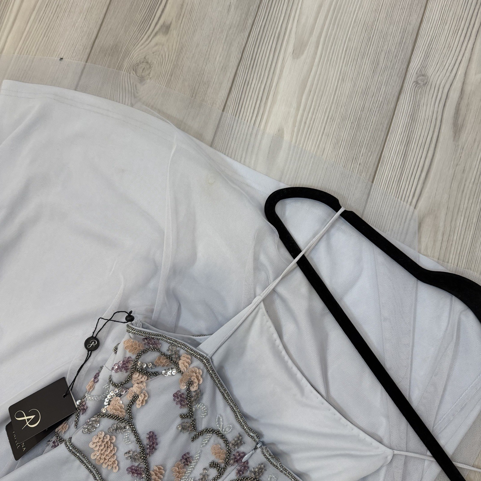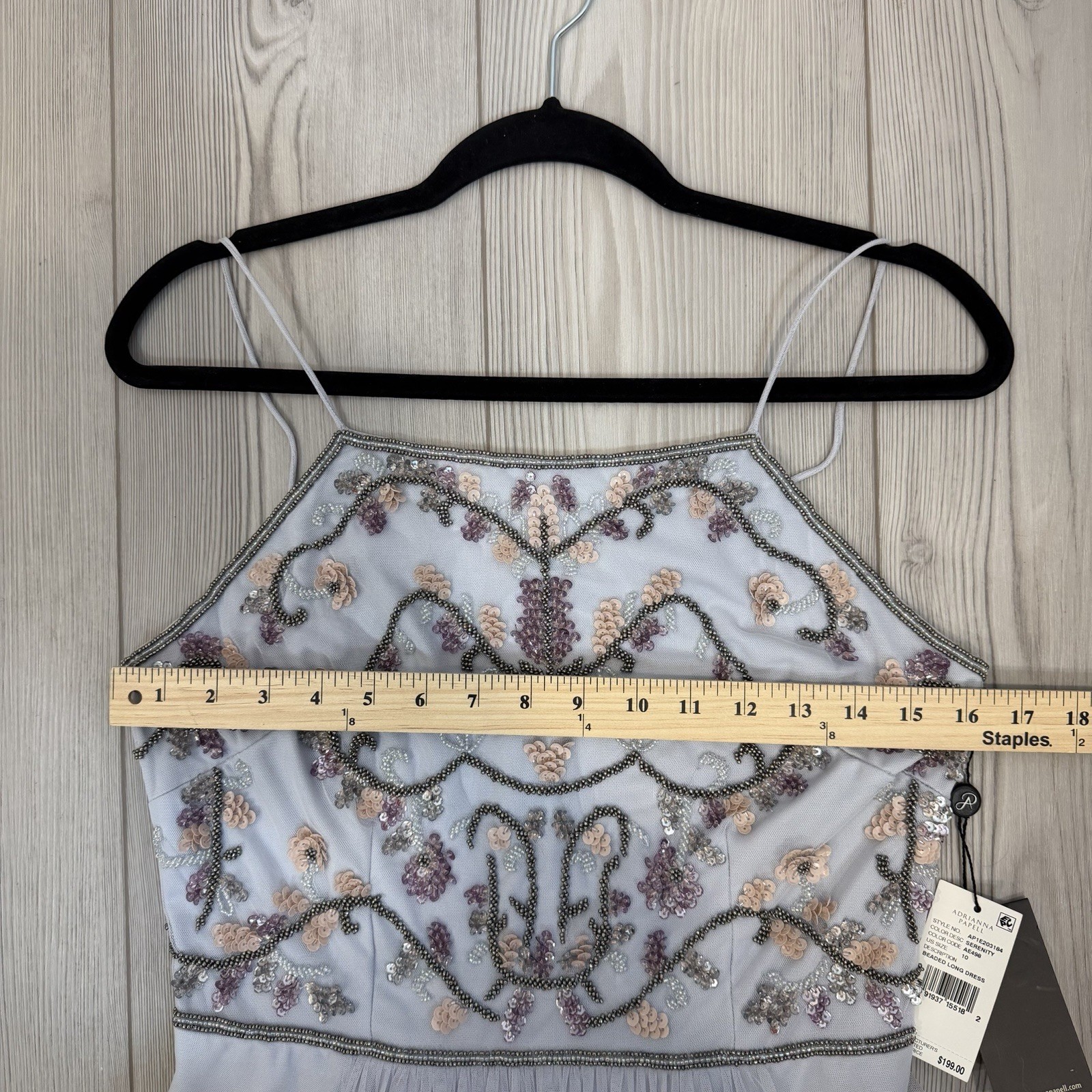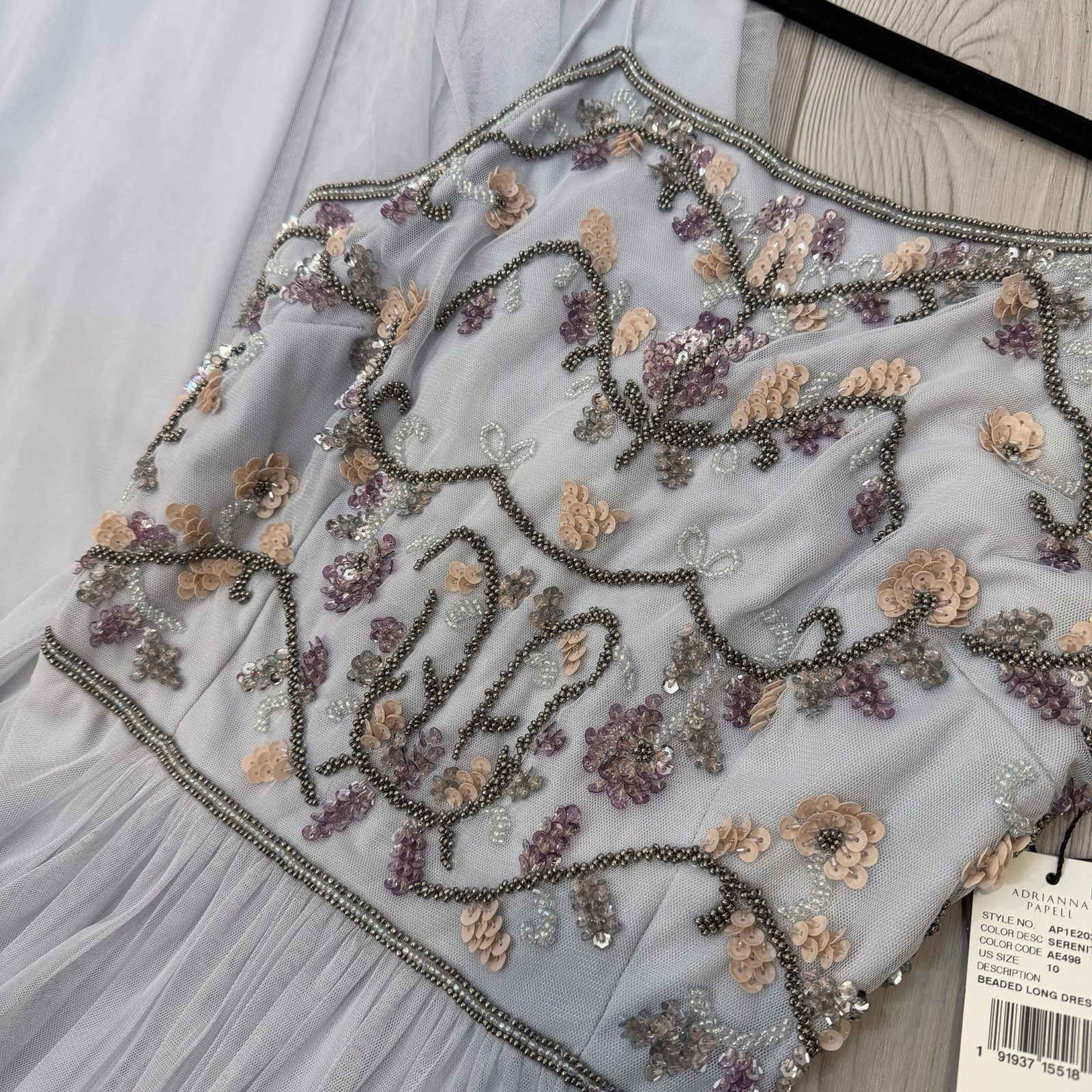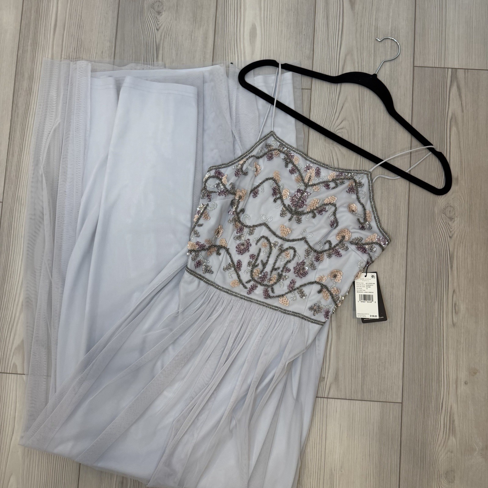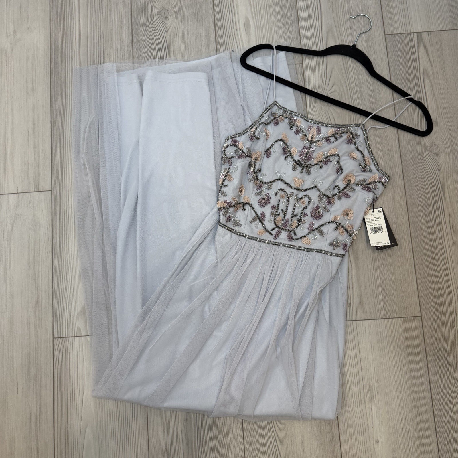 как выглядит NWT Adrianna Papell Size 10 Serenity Tulle Halter Floral Beaded Long Maxi Dress фото