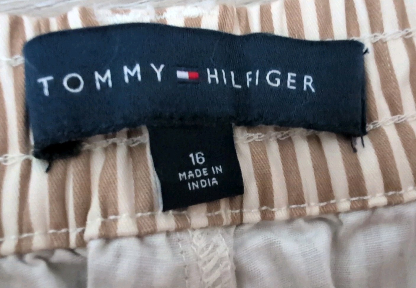 как выглядит Tommy Hilfiger Pants Womens 16 Wide Leg Tan Striped Mid Rise Cotton Blend фото