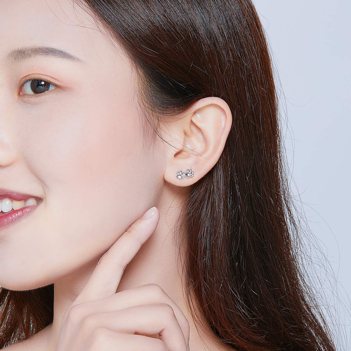 Lovely Puppy Paw Print Stud Earrings Sterling Silver for Women 5mm, white