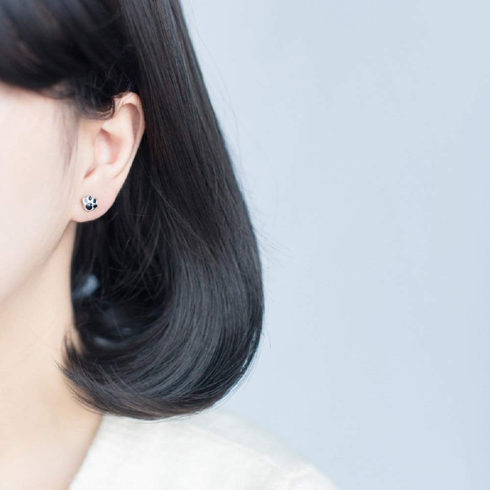 Cute Puppy Dog Cat Paw Print S925 Sterling Silver Small Stud Earrings white