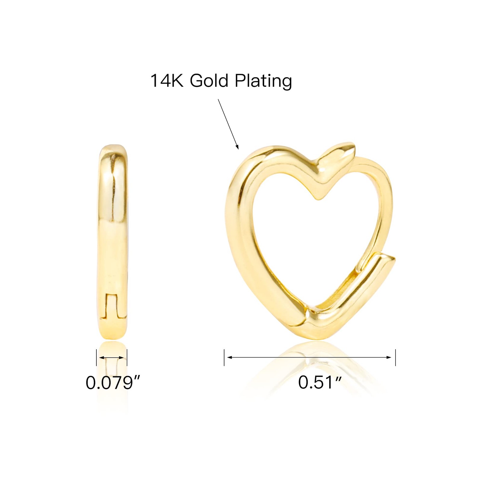 14K Gold Heart Hoop Earrings for Women Girls Small