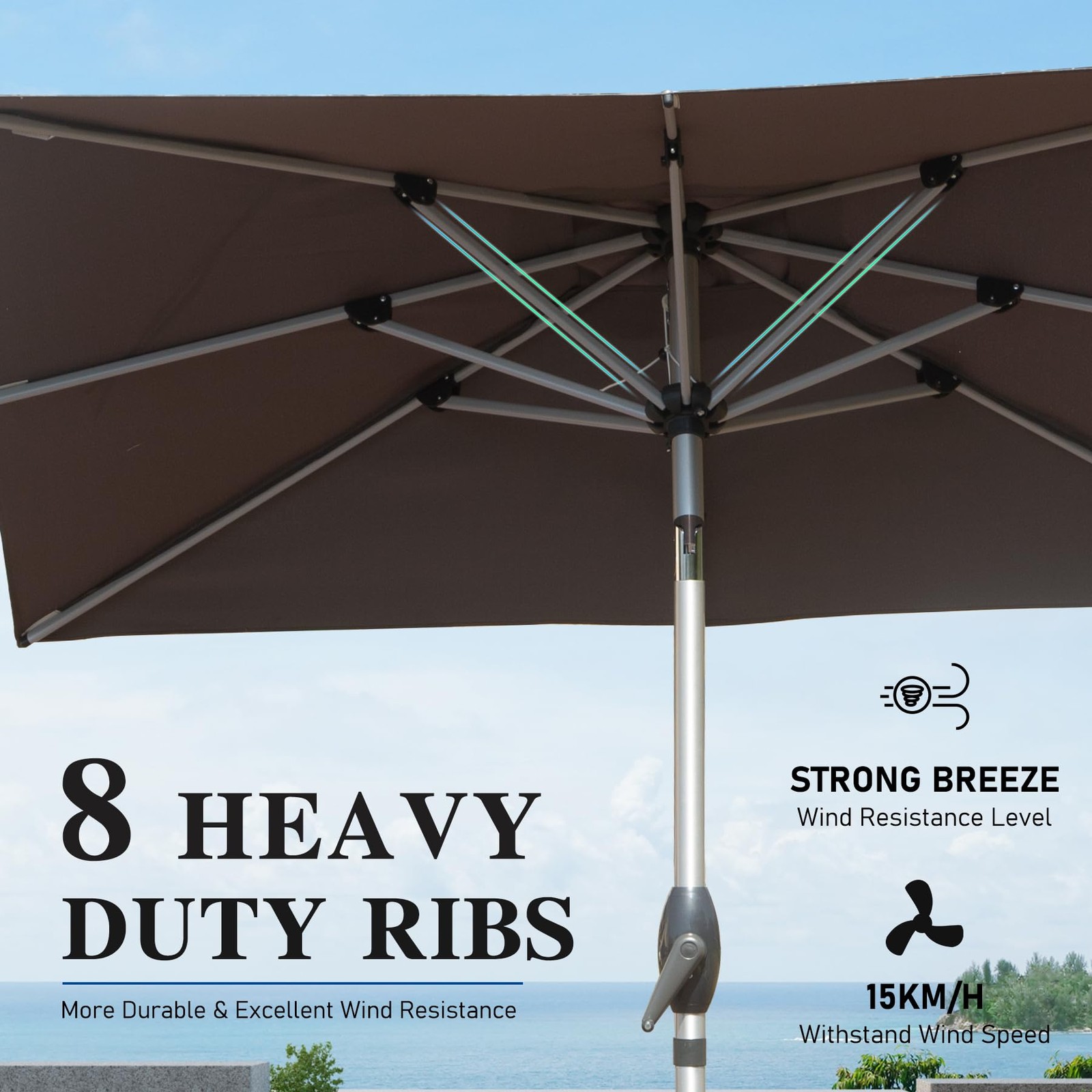 6' x 4' Rectangular Patio Umbrella Table Umbrella with 8 Sturdy Ribs Tilt