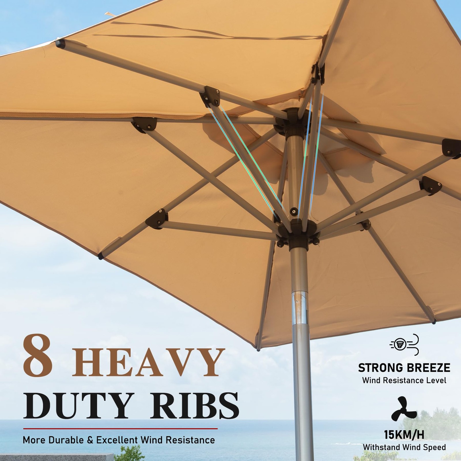 6' x 4' Rectangular Patio Umbrella Table Umbrella with 8 Sturdy Ribs Tilt