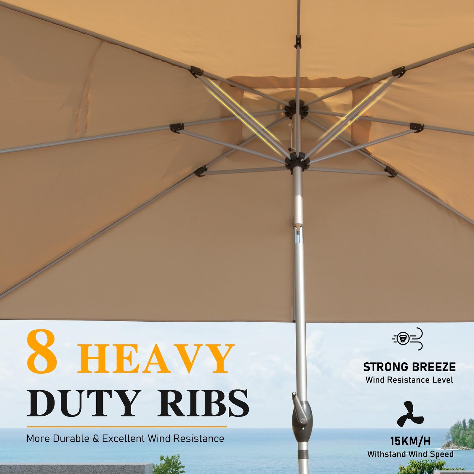 6.5' x 10' Rectangular Patio Umbrella Table Umbrella with 8 Sturdy Ribs Tilt