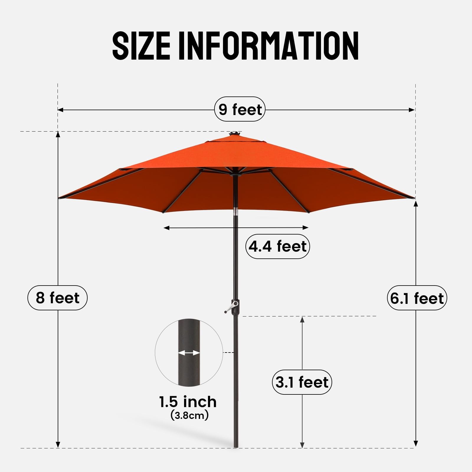 9 Ft Patio Umbrella - Polyester Outdoor Umbrella with 30 Push Button Tilt