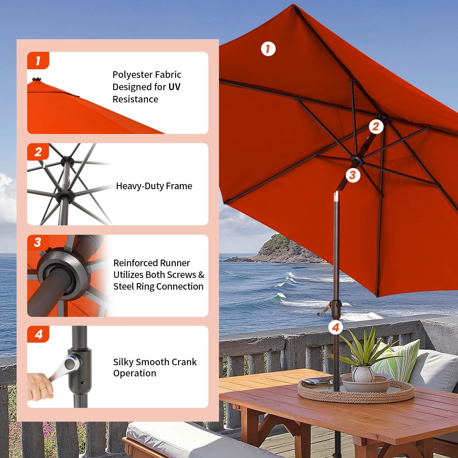 как выглядит 9 Ft Patio Umbrella - Polyester Outdoor Umbrella with 30 Push Button Tilt фото