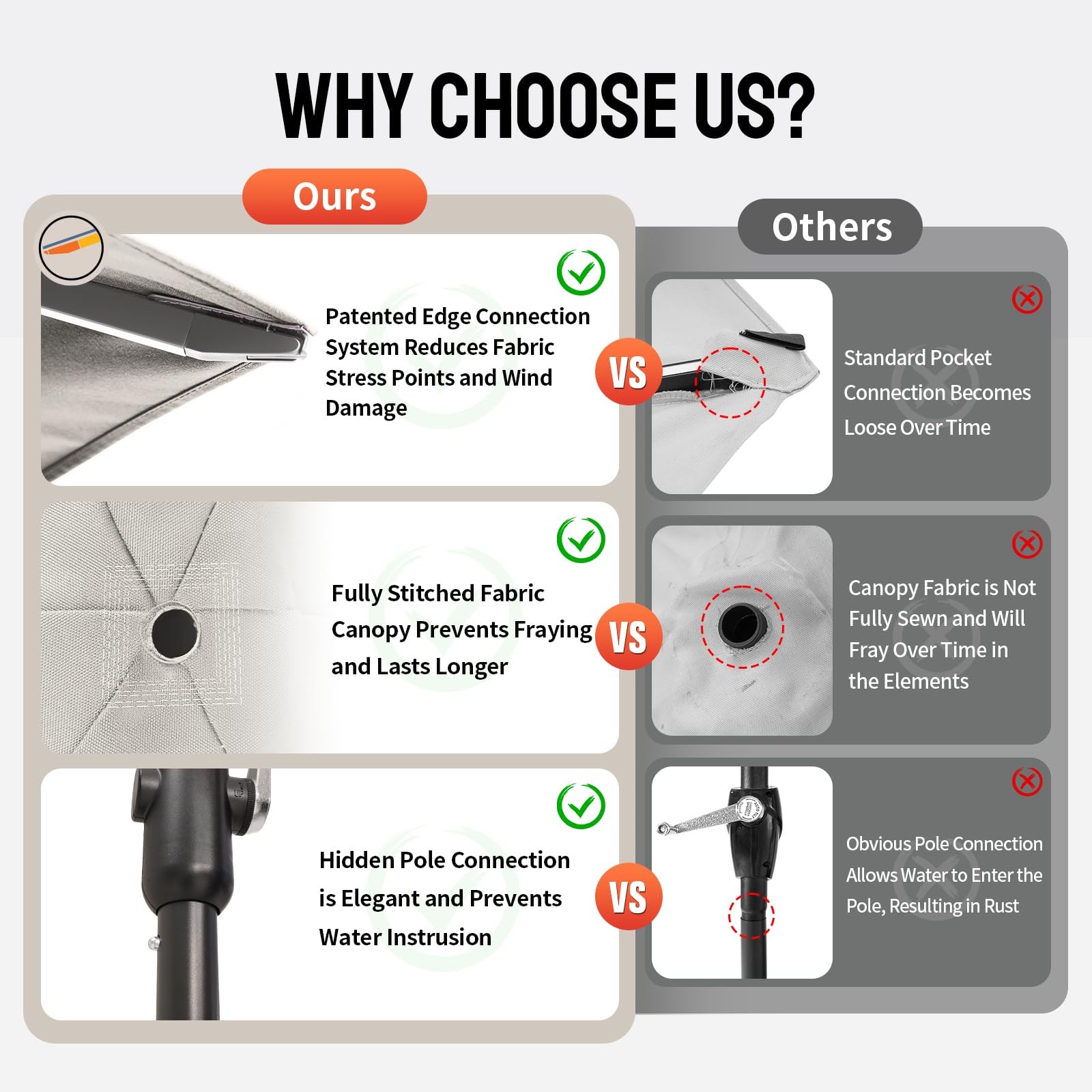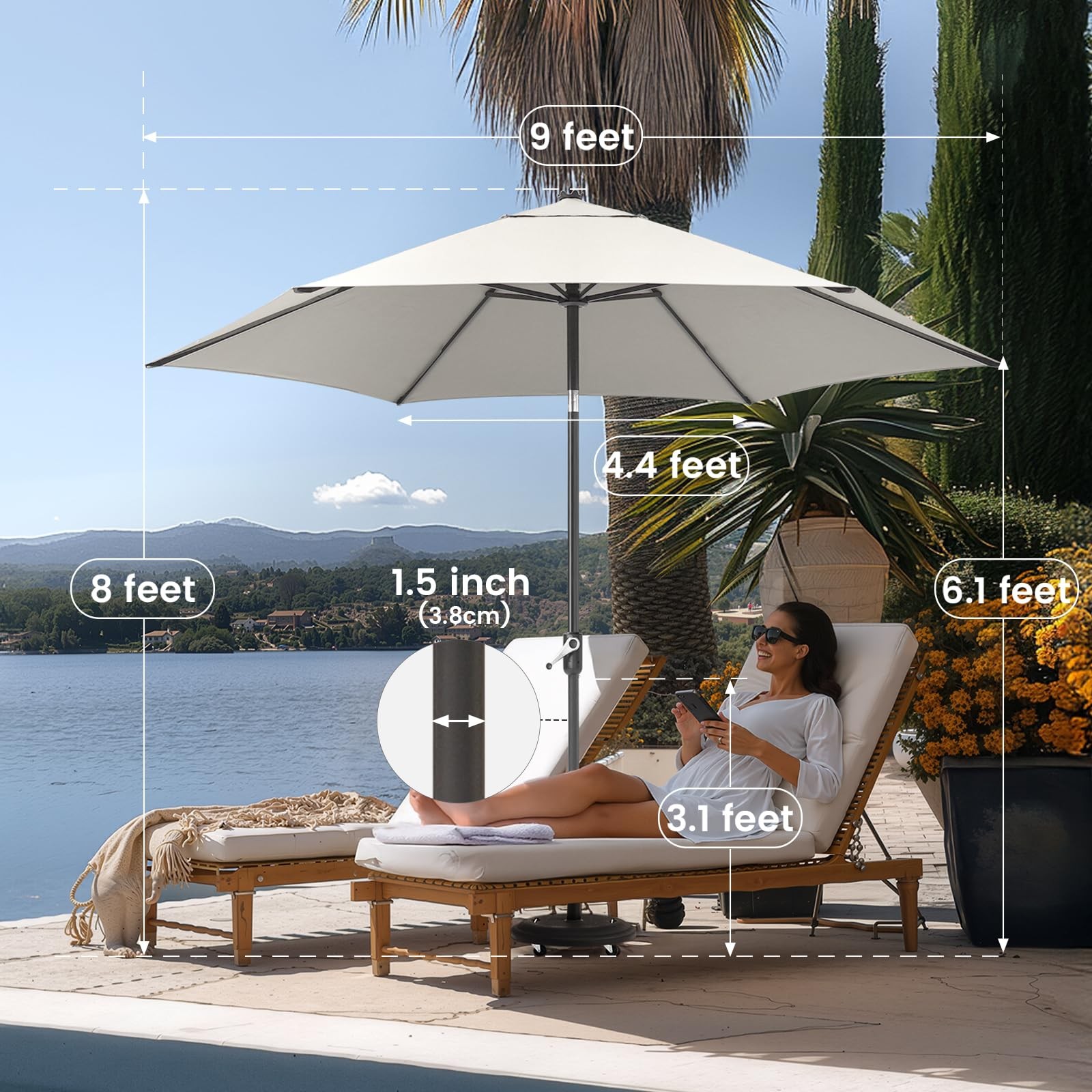 9 Ft Patio Umbrella - Polyester Outdoor Umbrella with 30 Push Button Tilt