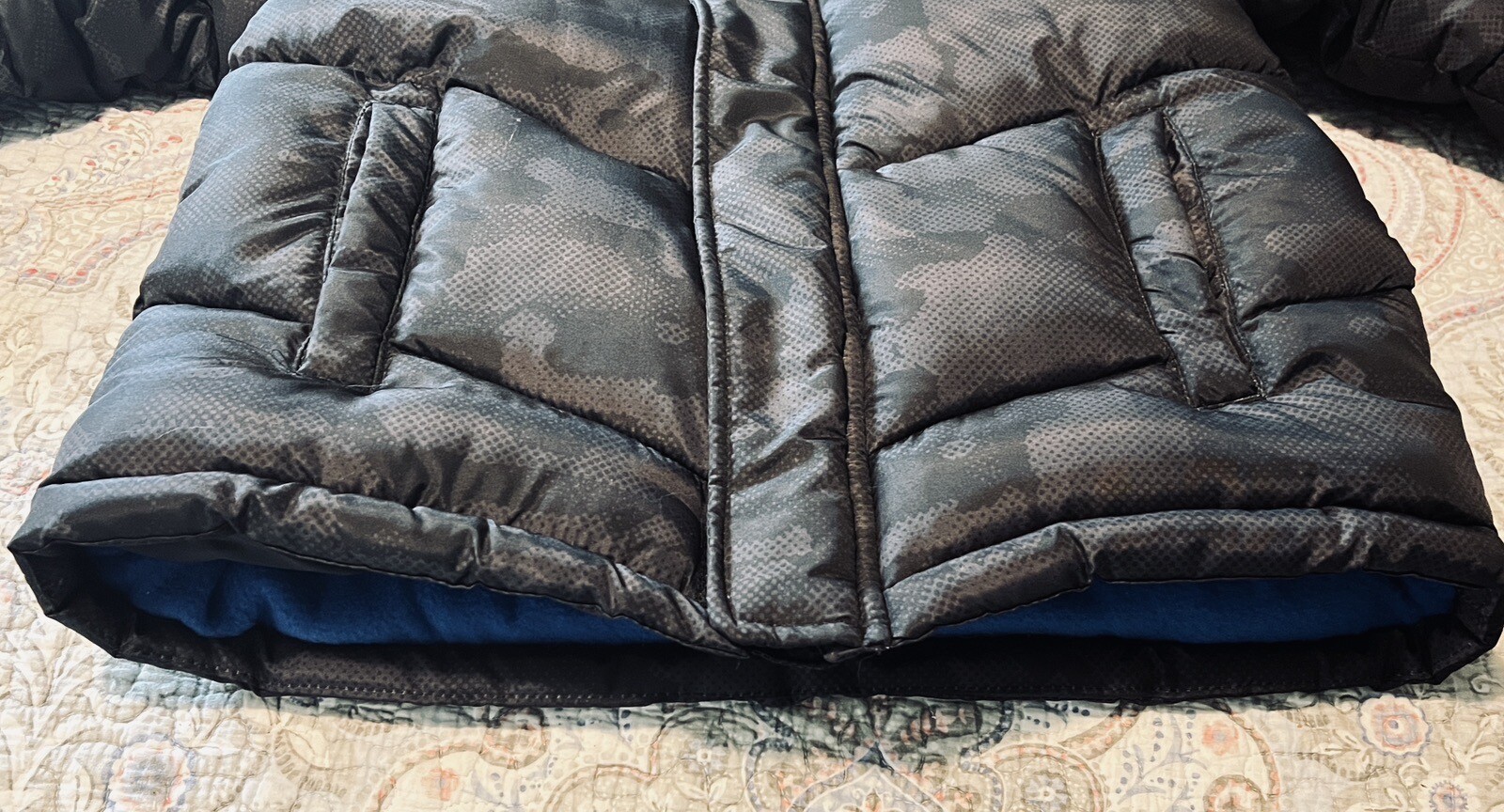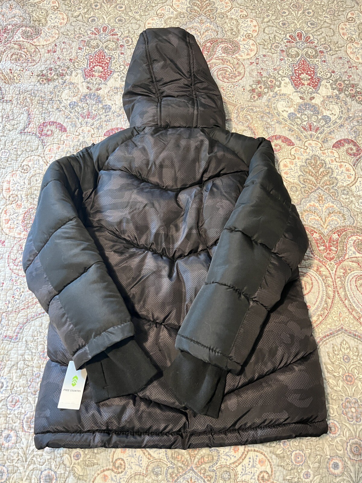 как выглядит Free Country Boys Puffer Coat Black/Gray Camo Hooded Lined Medium 10/12 NWT фото