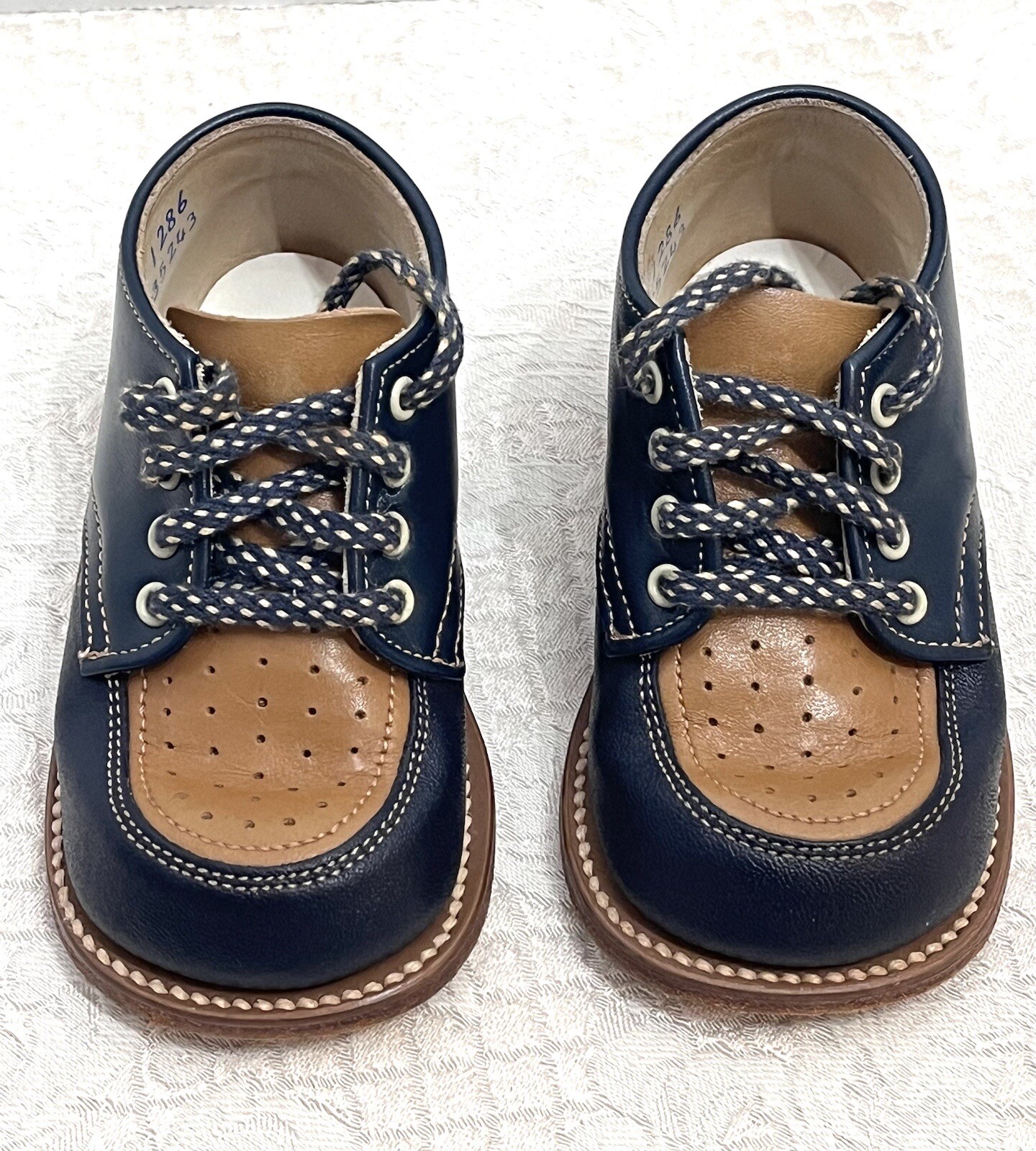 Vintage Stride Rite Erin 5 EE Navy Blue Tan Leather Lace Up High Top Shoes EUC