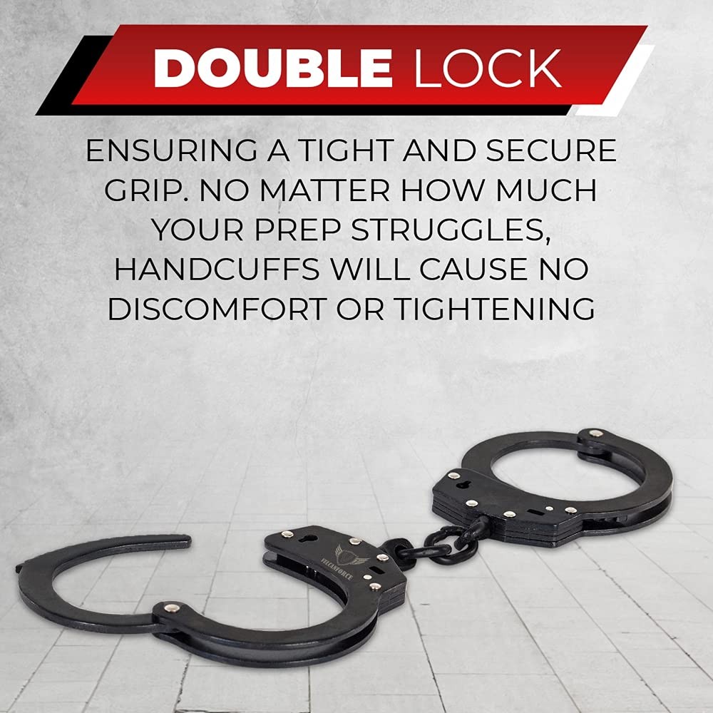 Handcuffs Law Enforcement - Heavy Duty Steel Chain Hand Cuffs - Includes 2 Ke...