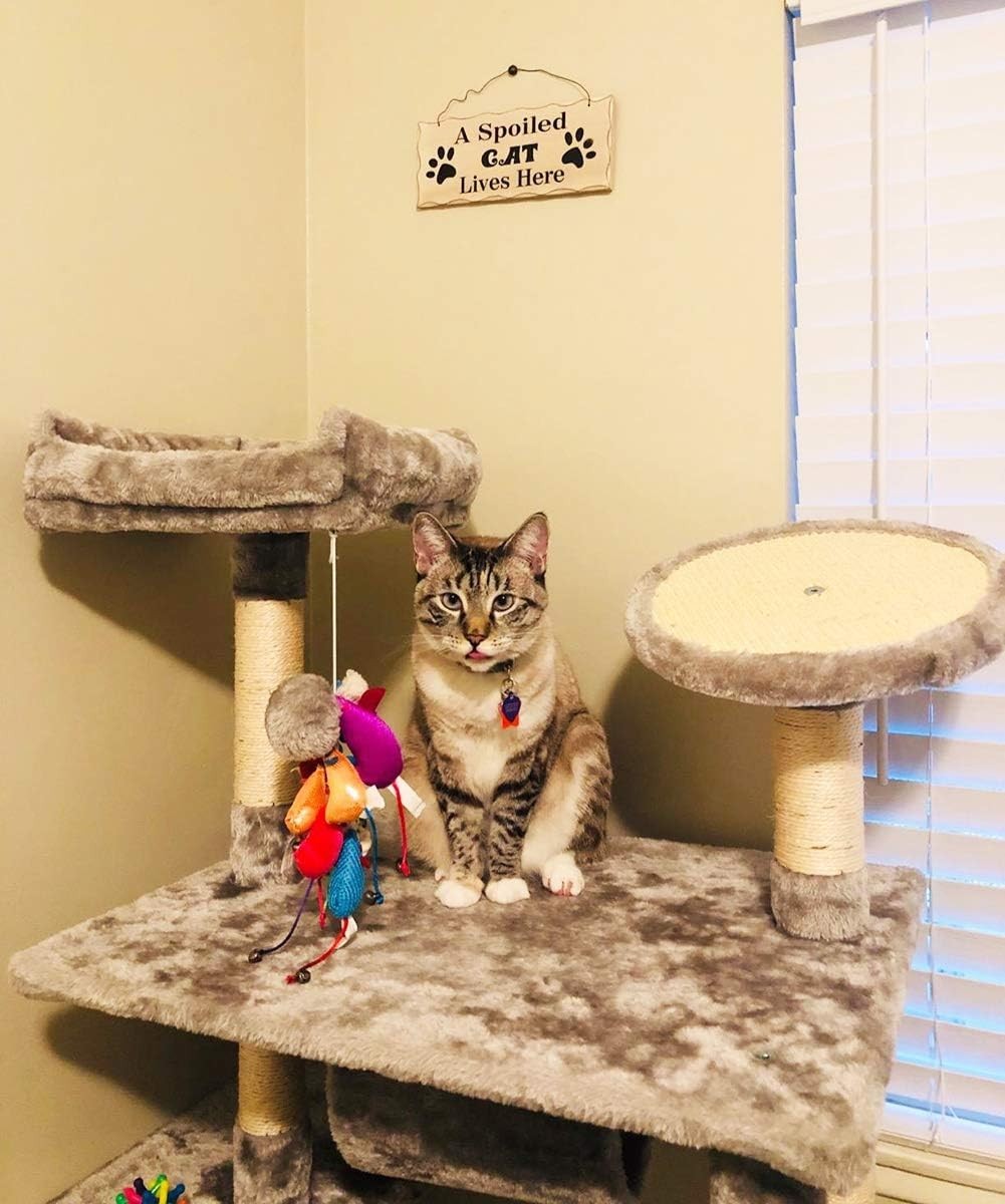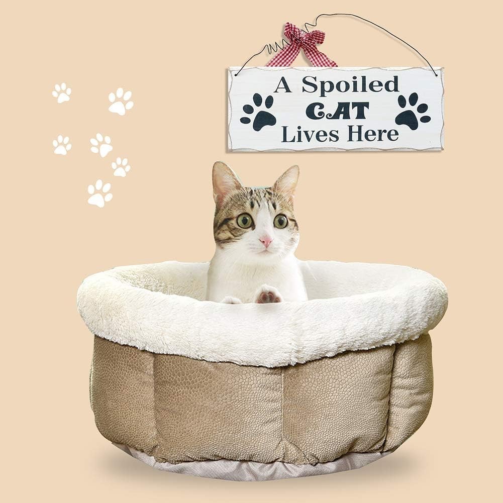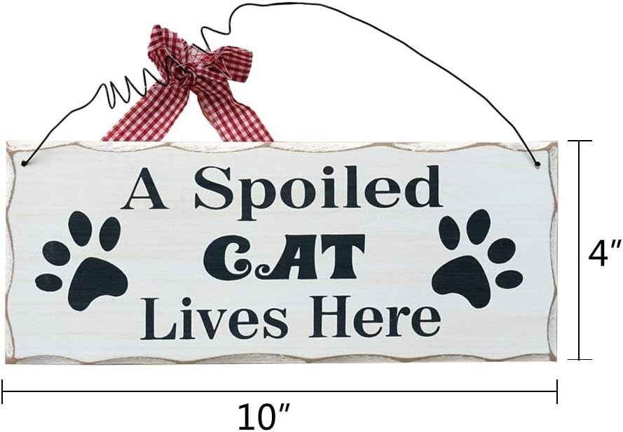 Wooden Cat Lover Sign - Hanging Decorative Plaque 'A Spoiled Cat Lives Here' ...