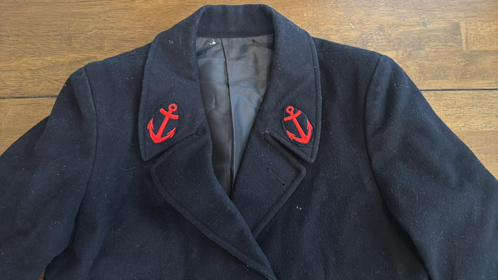 как выглядит Vintage French Navy Pea Coat Wool Lined Overcoat Medium фото