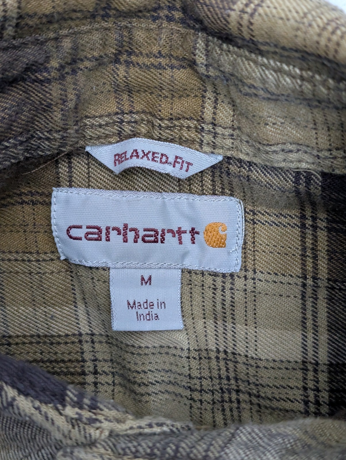 Carhartt Relaxed Fit Flannel Shirt Mens M Olive Green Tartan Plaid Logo Workwear