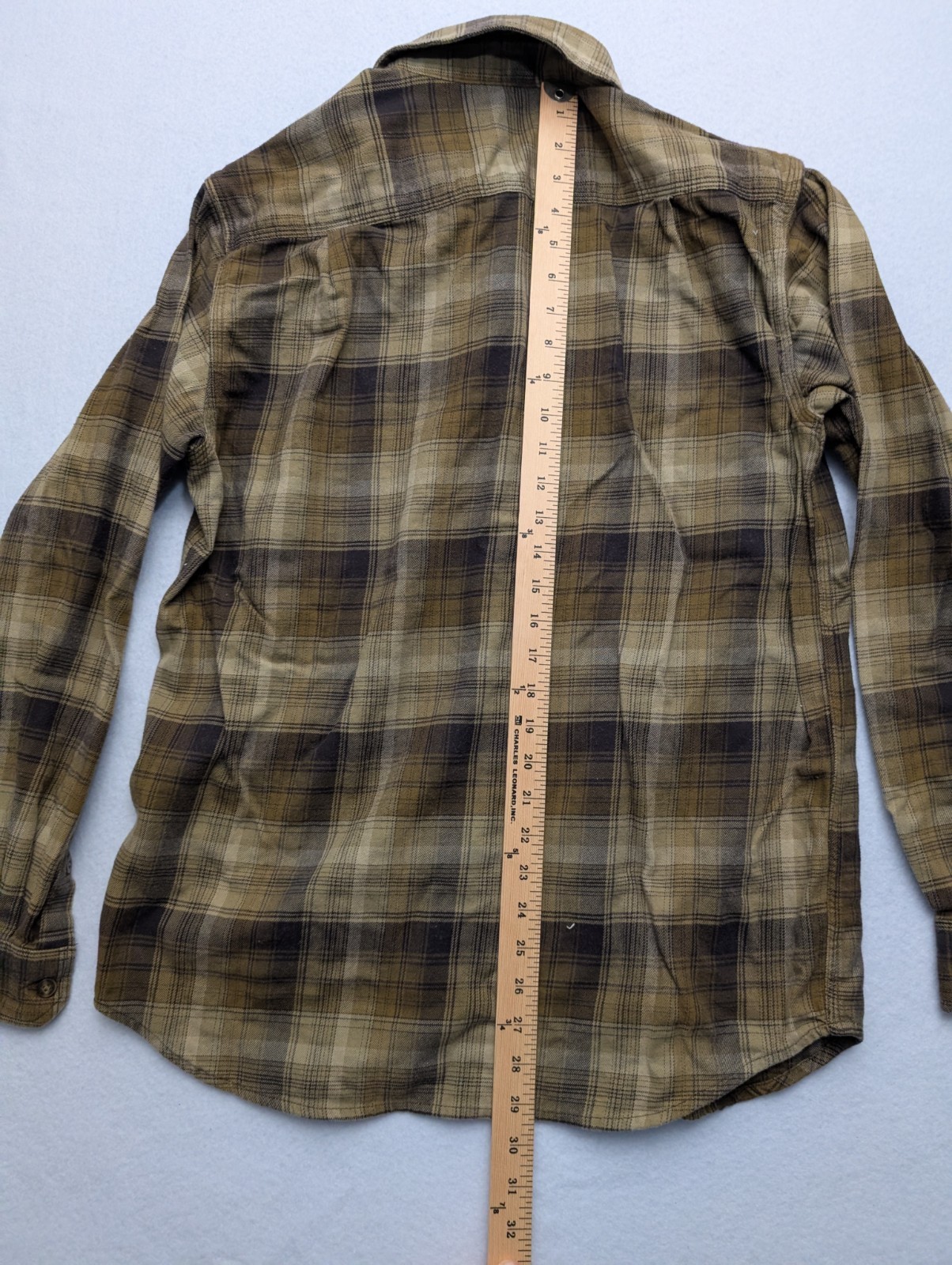 как выглядит Carhartt Relaxed Fit Flannel Shirt Mens M Olive Green Tartan Plaid Logo Workwear фото