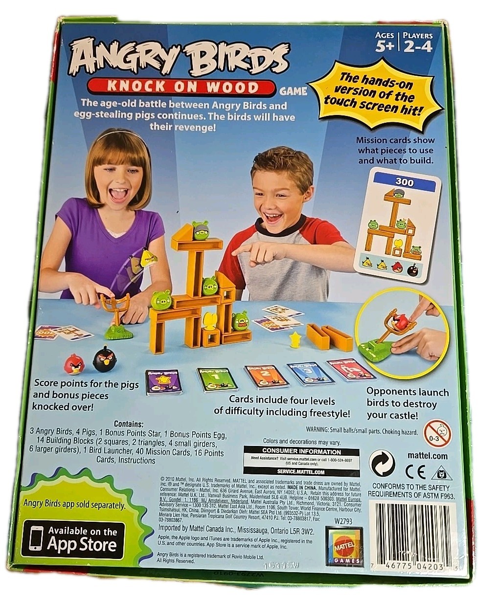 Angry Birds Knock On Wood Board Game Mattel 2010. 99 Complete. No Instructions
