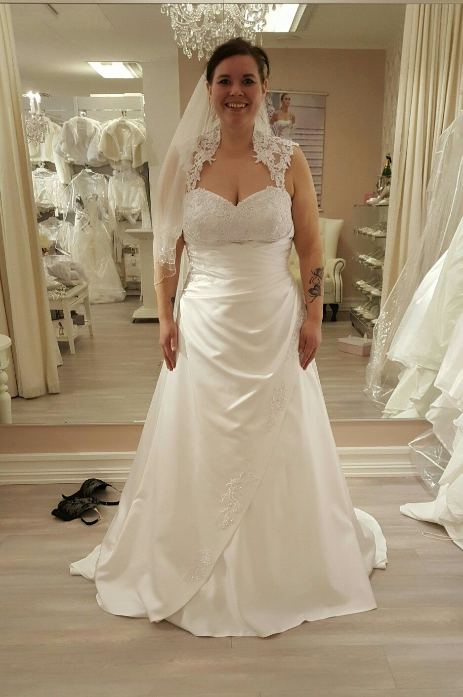 Classic Wedding Dresses Satin Lace Appliques A Line Sweep Train Bridal Gowns