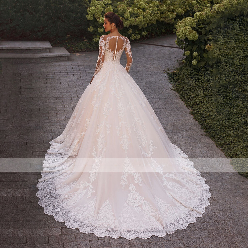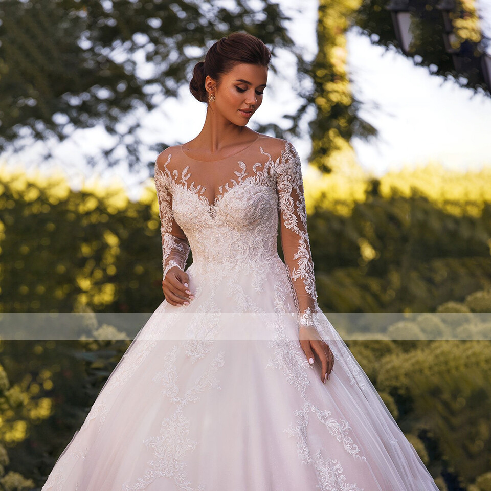 как выглядит Luxury Ball Wedding Dresses Sweetheart Lace Applique Illusion Back Bridal Gowns фото