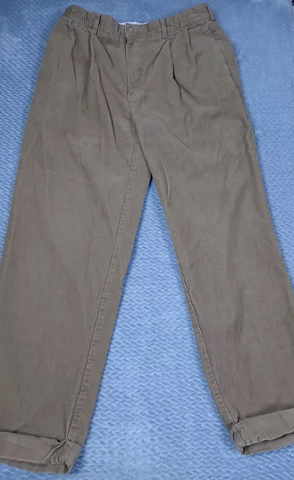 Vintage Polo Ralph Lauren Pants Mens 34x30 Brown Corduroy Pleated Cuffed