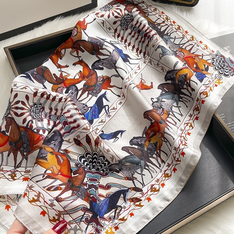 100 Silk 20 Small Square Scarf Women neckerchief Bandana White Horse Pattern