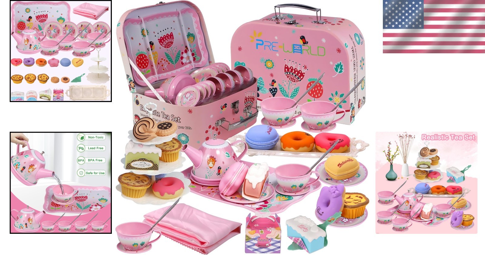 как выглядит 45-Piece Flower-Themed Tea Party Set for Kids  Imaginative Pretend Play Fun фото