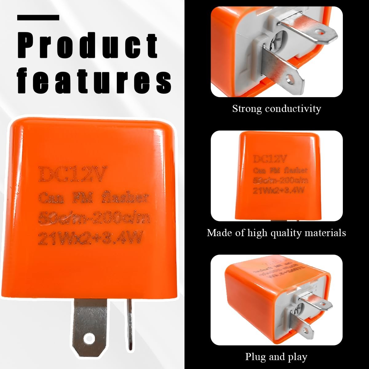 Included Components: 2Pcs 12V Speed Adjustable 2 Pin Led Flasher Relay