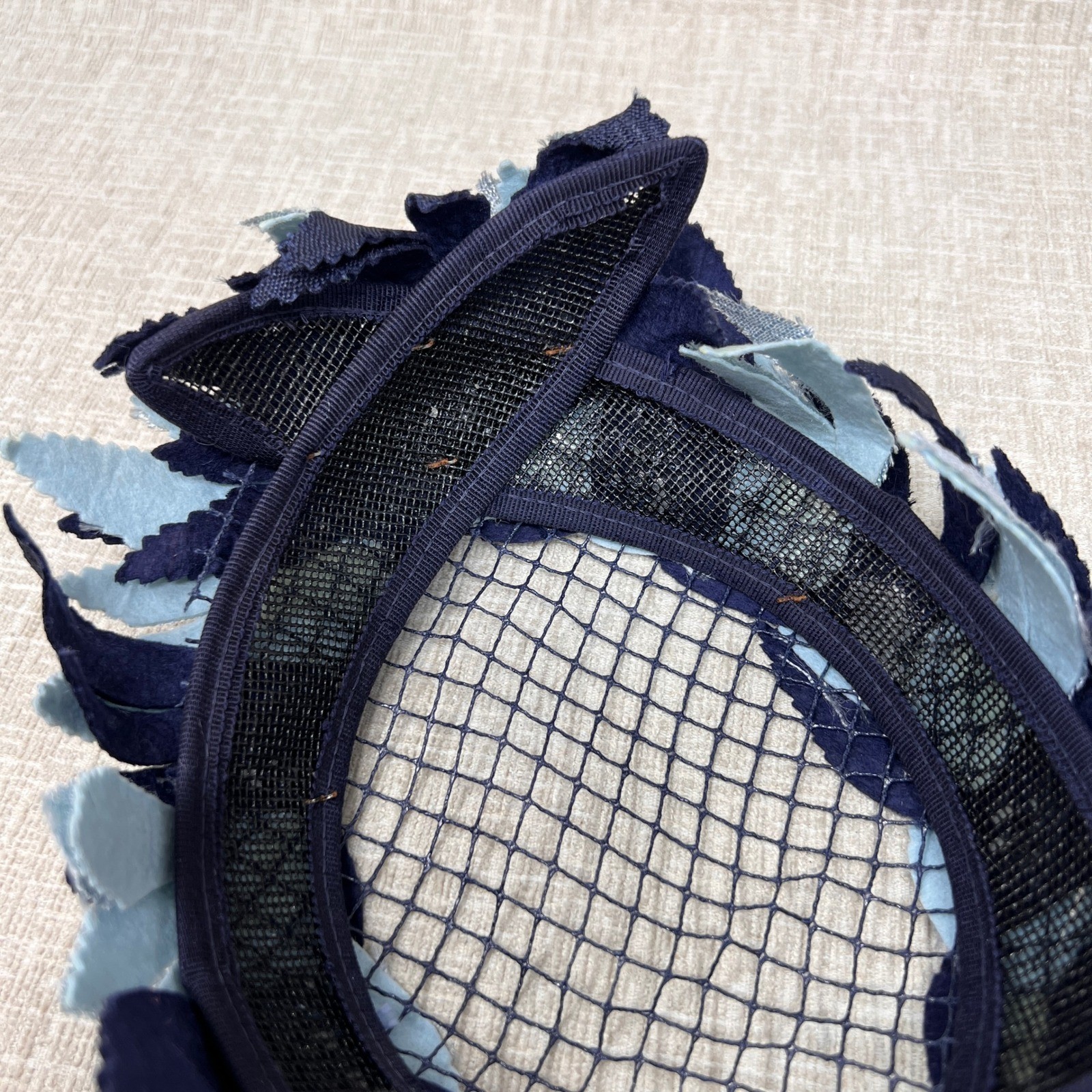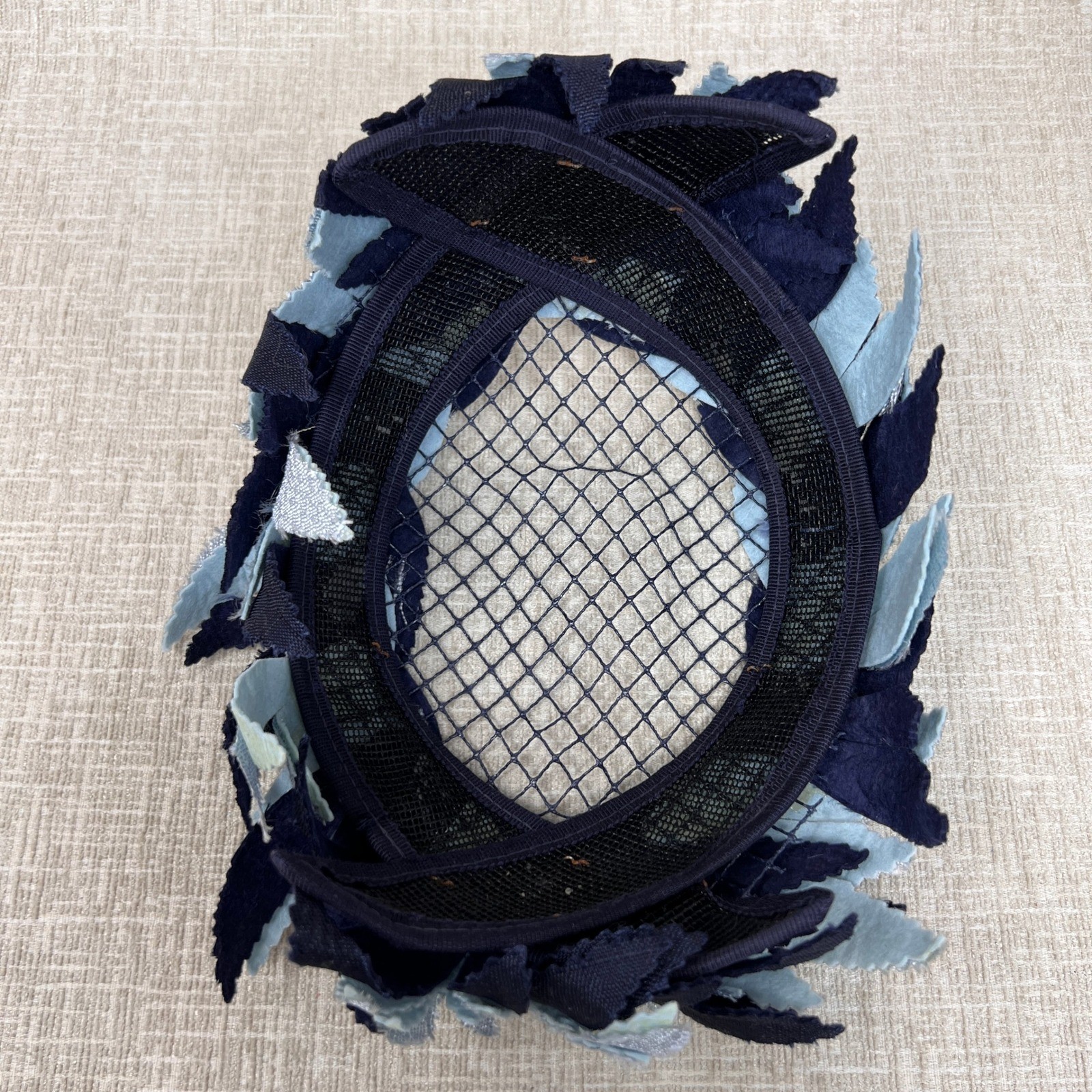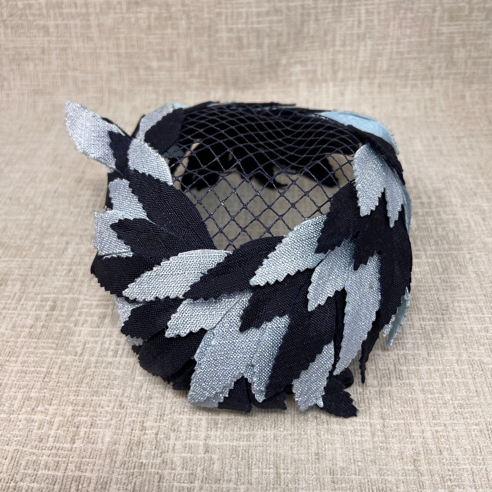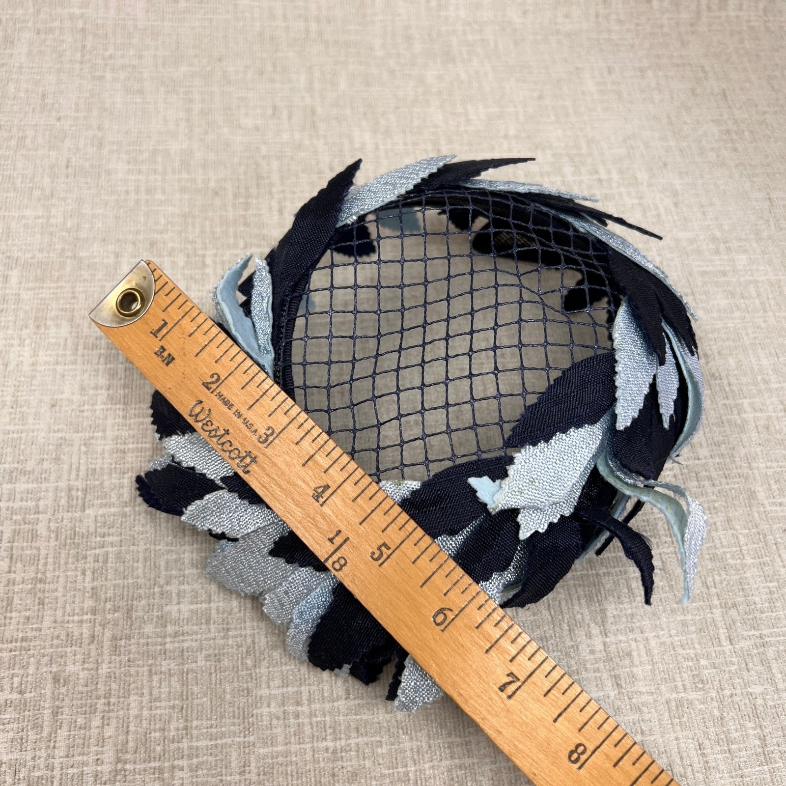 Vintage Leaf Fascinator Cocktail Hat Women One Size Navy Silver Statement Retro