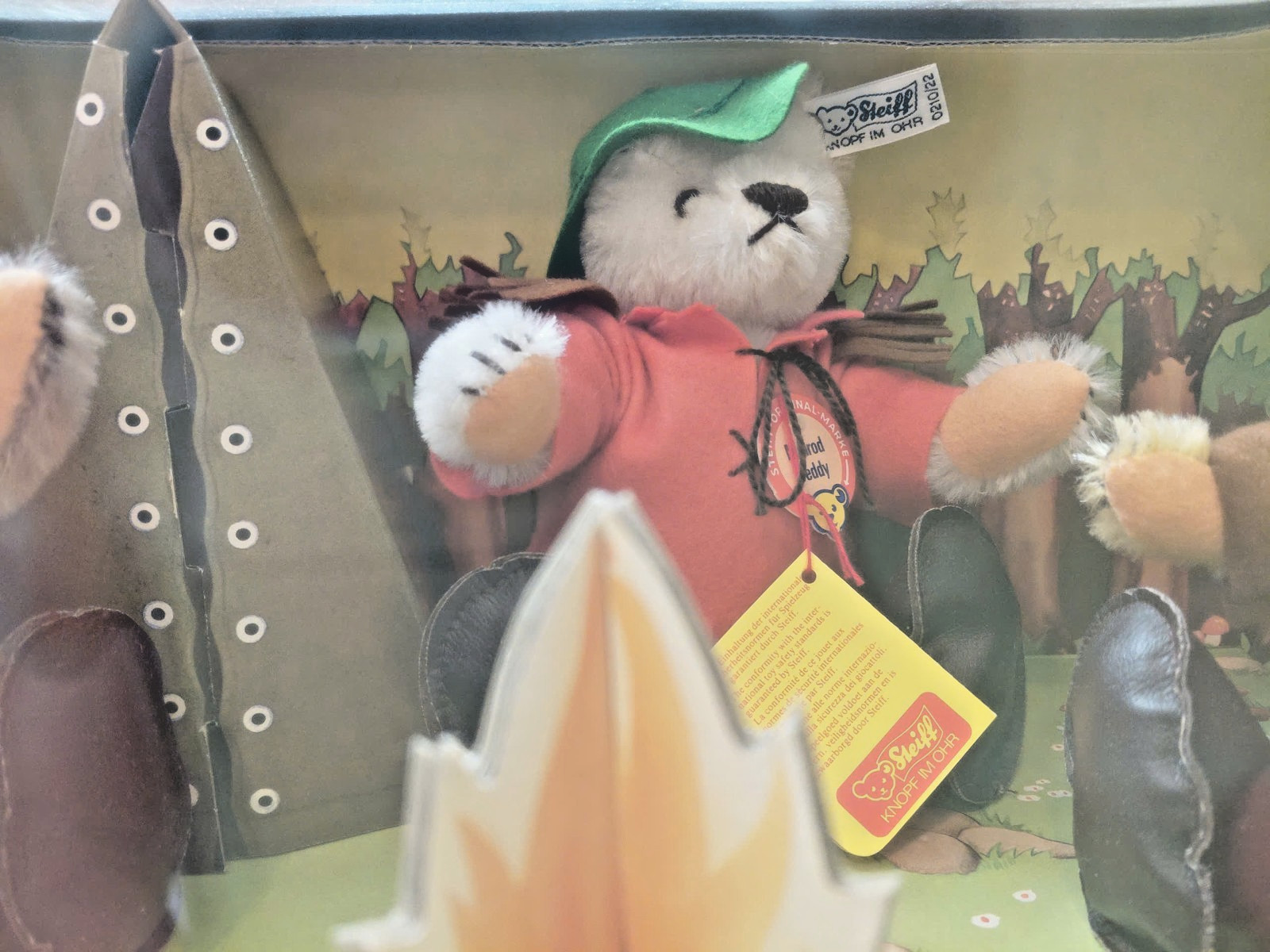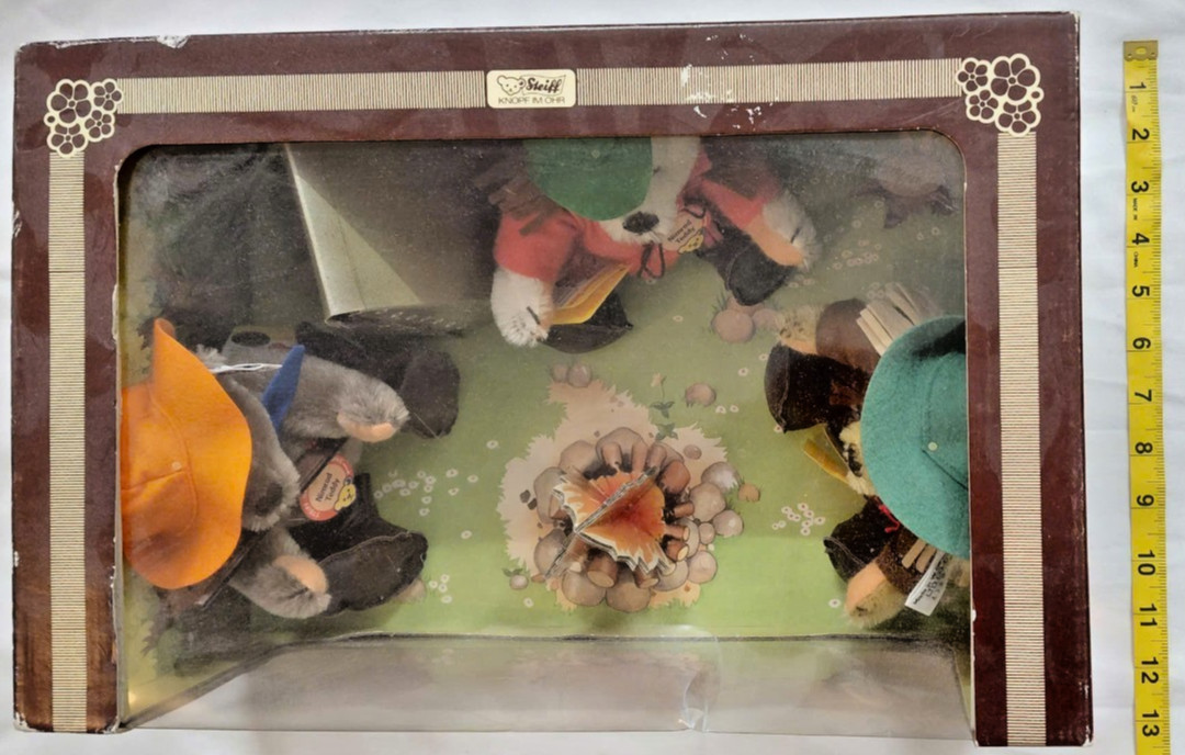 как выглядит Vtg Steiff Campfire Teddy Bear Diorama Display Set w/ Original Box 20" Germany фото