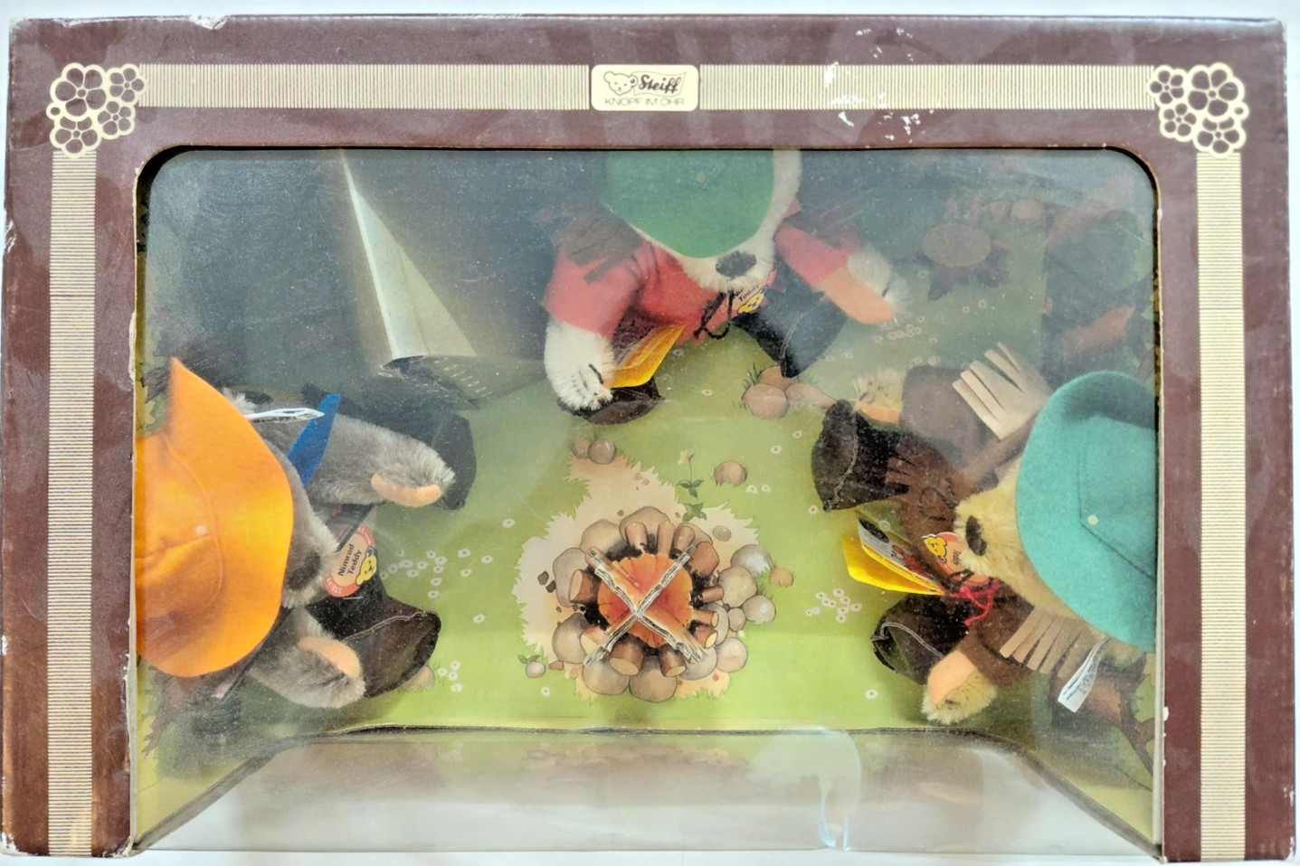 Vtg Steiff Campfire Teddy Bear Diorama Display Set w/ Original Box 20 Germany