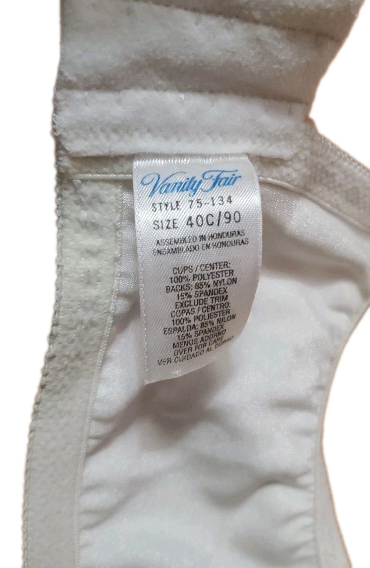 как выглядит Vintage Vanity Fair Size 40C Bra Underwire Sheer Lace Satin Cream Ivory 75-134 фото
