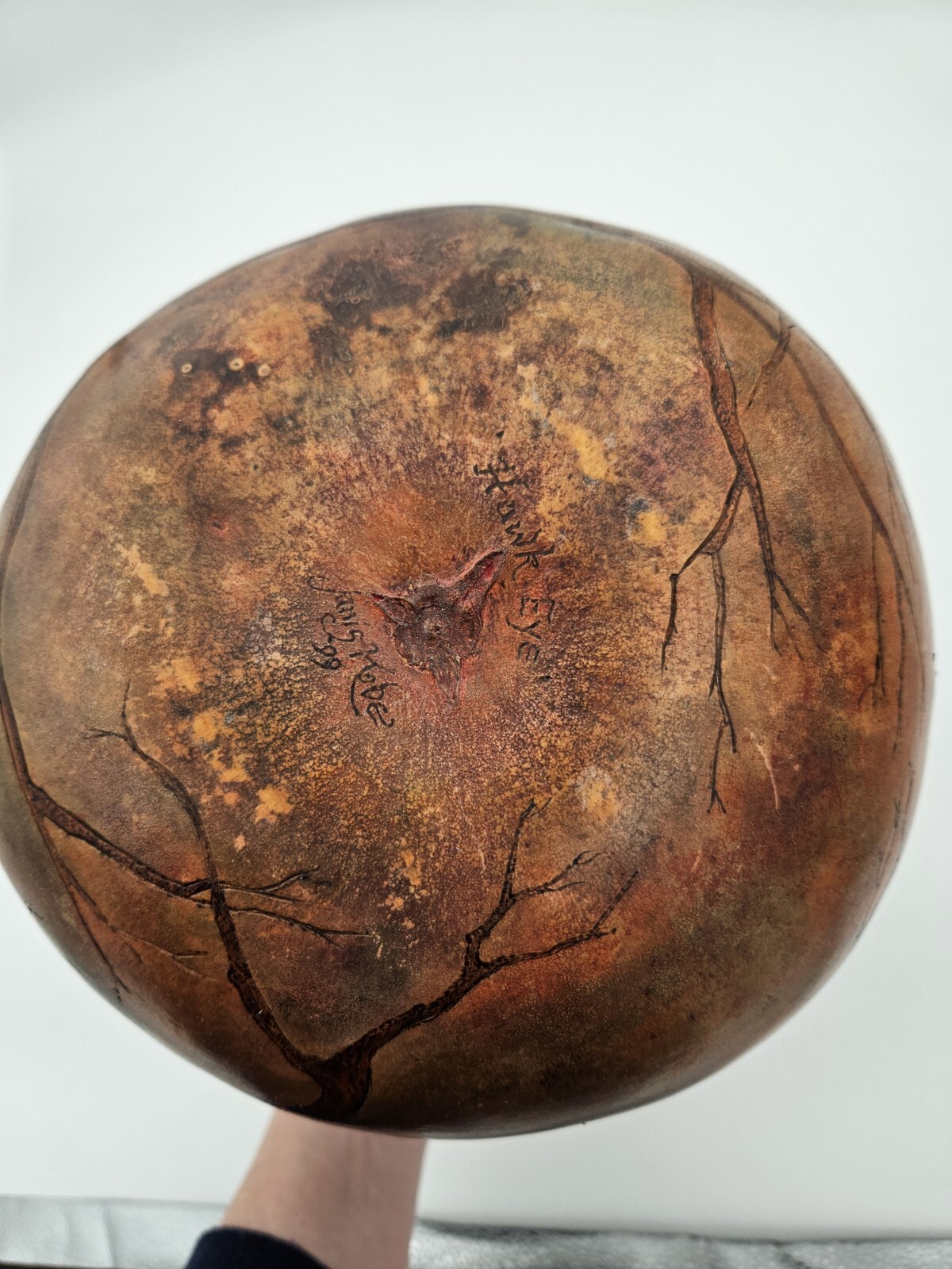 как выглядит Janis Kobe Handpainted Gourd Art Hawkeye Hawk Bird Gourd Decor Folk Art фото