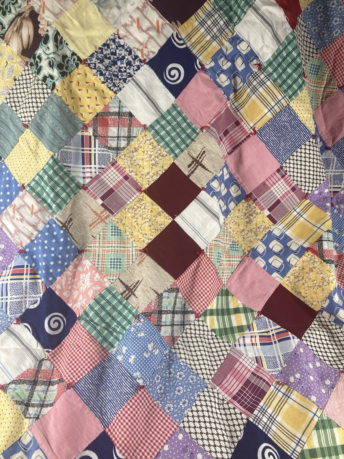 Handmade Patchwork Quilt, over 100years old approximately 78x78 Vintage