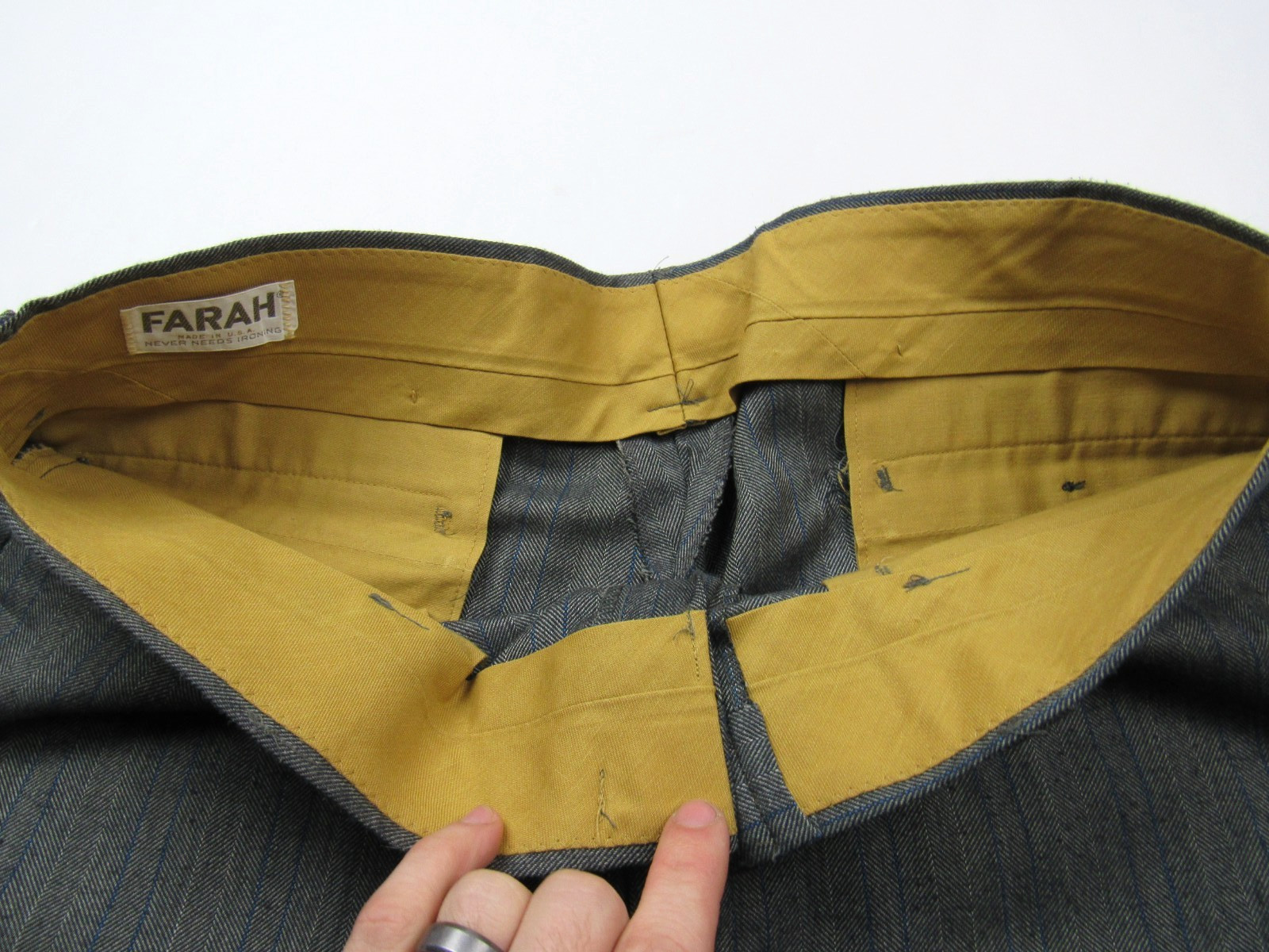 как выглядит Vtg 1960s Farah Pinstripe Wool Trousers Pant 35 x 30 Hollywood 60s Flare Leg фото